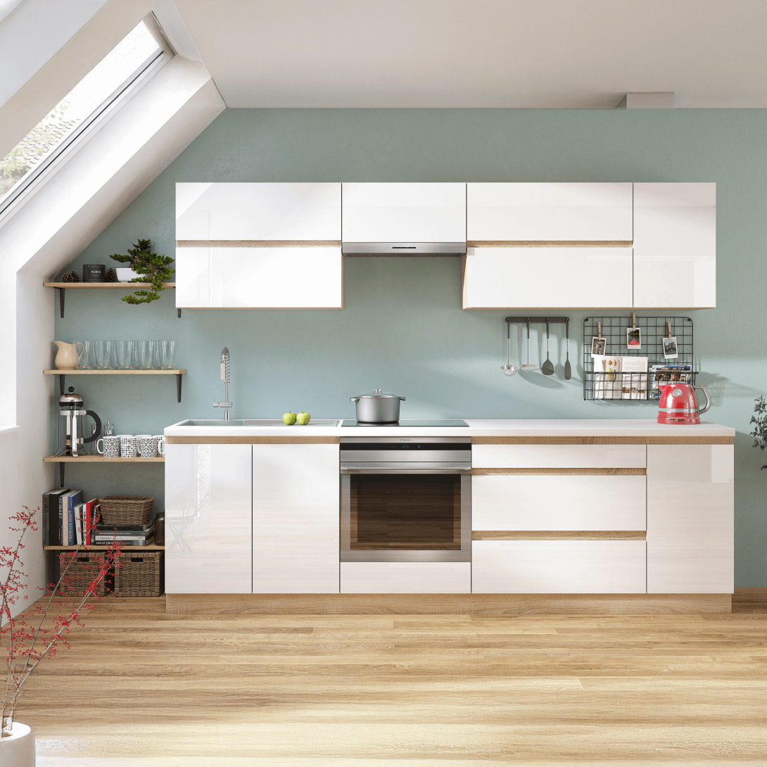 KONDELA Dolná skrinka D 60S3, vysoký biely lesk/dub sonoma, LINE
