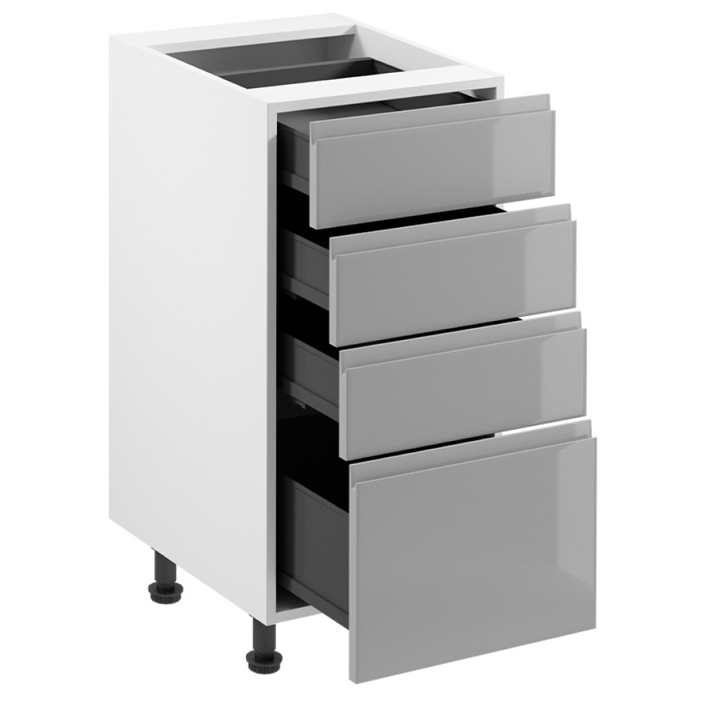 Spodná skrinka, Aurora D40S4Materiál: DTD laminovaná/MDFFarba: biela/sivá extra vysoký leskRozmery (ŠxHxV): 40x47x82 cmHrúbka materiálu : 15 mmSystém tichého zatvárania dvierok4 šuplílkyBez úchytiekŠuplík typu METALBOXSystém tichého dorazu šuplíkovJe nutné objednať potrebný počet ukončení spodnej lištySpodnú lištu je potrebné objednať zvlášť, pričom daný rozmer treba uviesť do poznámkyPotrebné doobjednať 2 ks úchytov na sokel - cena 1Eur/2ksDodávané v demontePracovná doska nie je súčasťou skriniek. Je možné si doobjednať pracovnú dosku v prevedení dub artisan s hrúbkou 38 mm za 59 eur/bm. Možnosť dokúpiť drez, drezovú batériu a príslušenstvo. Ku spodným skrinkám máte možnosť dokúpiť spodnú lištu/sokel v bielej farbe s rozmerom 1 bm za 8 eur alebo s rozmerom 2 bm za 16 eur a ukončenie na sokel s hĺbkou 47 cm alebo 58 cm za 5 eur. Ku každej dolnej skrinke, okrem D25PZ, je potrebné doobjednať 2 ks úchytok na sokel - cena 1Eur/2ks.
