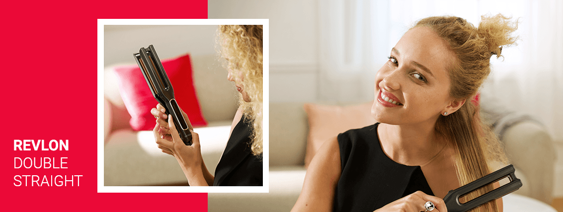 REVLON DOUBLE STRAIGHT je revolučná a bezkonkurenčná žehlička na vlasy, akú ste ešte nezažili! Inovatívny dizajn dvojitej dosky vytvára počas úpravy vlasov, jediným potiahnutím, dvojnásobnú silu narovnávania. Prvá platňa vlasy narovná, pričom bezprostredným prechodom druhej platne budú vaše vlasy hladšie a rovnejšie, než ako ste zvyknutý. Nedochádza k žiadnej strate tepla medzi prechodmi žehliacich plôch, čím sa dvojnásobne urýchľuje proces žehlenia a tým sa skracuje čas pôsobenia horúcich platničiek na vlasy až o 50%. Vlasy budú nielen hodvábne hladké, ale aj zdravšie.