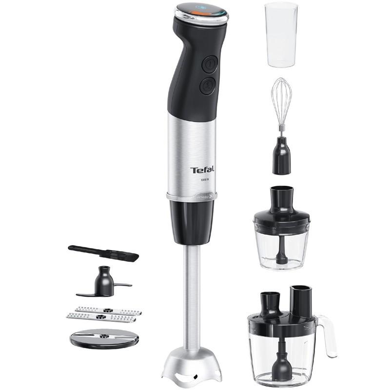 S tyčovým mixérom Quickchef+ značky Tefal si užijete mimoriadny výkon a maximálnu kontrolu. Technológia nožov Powelix a príkon 1000 W pre neuveriteľne hladké výsledky a až o 30 % rýchlejšie mixovanie*, aby boli suroviny krémové a rovnomerne rozmixované aj v prípade tých najtvrdších surovín. Objavte nekonečnú všestrannosť s kompletnou kuchárskou súpravou: food processor 5 v 1, kompaktný sekáčik a šľahacia metla. Navyše 20 variabilných rýchlostí + nastavenie turbo na ľahko použiteľnom ovládači.