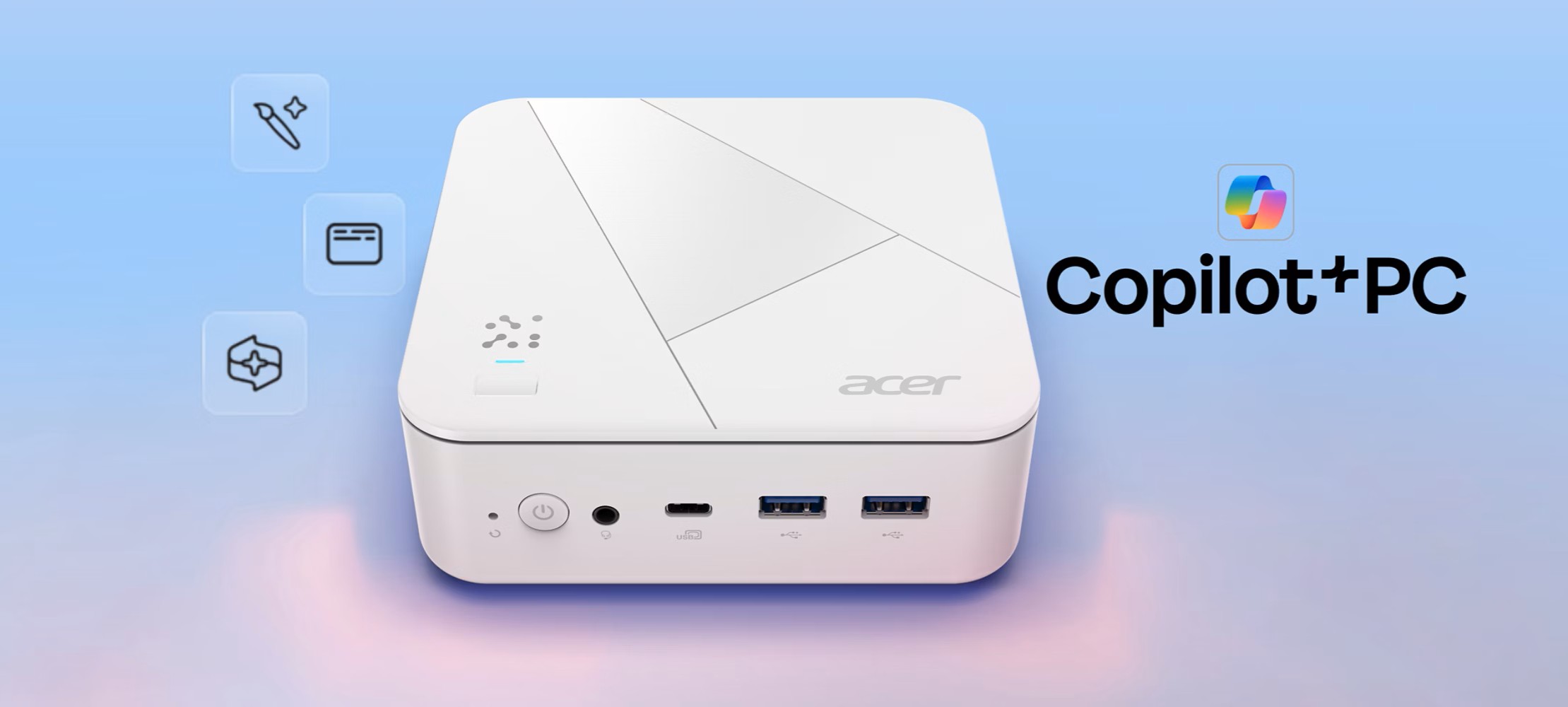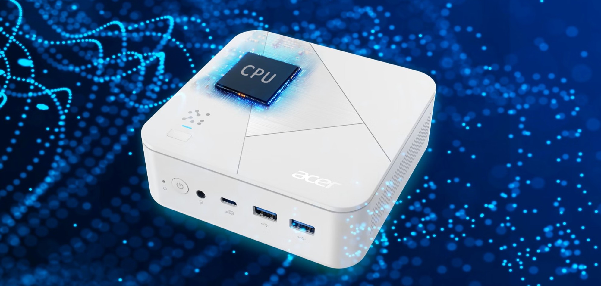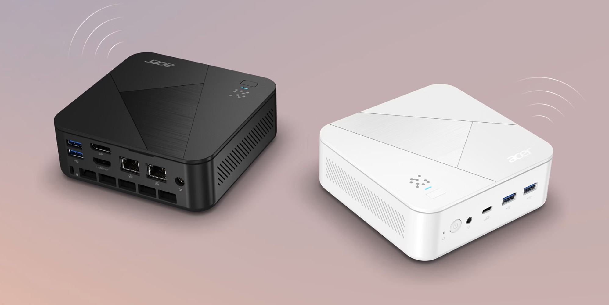 Extrémne kompaktný počítač Acer Revo Box AI s rozmermi 13 x 13 x 4,3 cm a hmotnosťou pod 1 kg ponúka bleskurýchlu Wi-Fi 6E, dva 2,5 Gb ethernetové porty a vstavanú čítačku odtlačkov prstov pre vyššie zabezpečenie. Je k dispozícii v čiernej alebo bielej farbe, hladko zapadne do akéhokoľvek priestoru a zároveň poskytuje vysoký výkon.