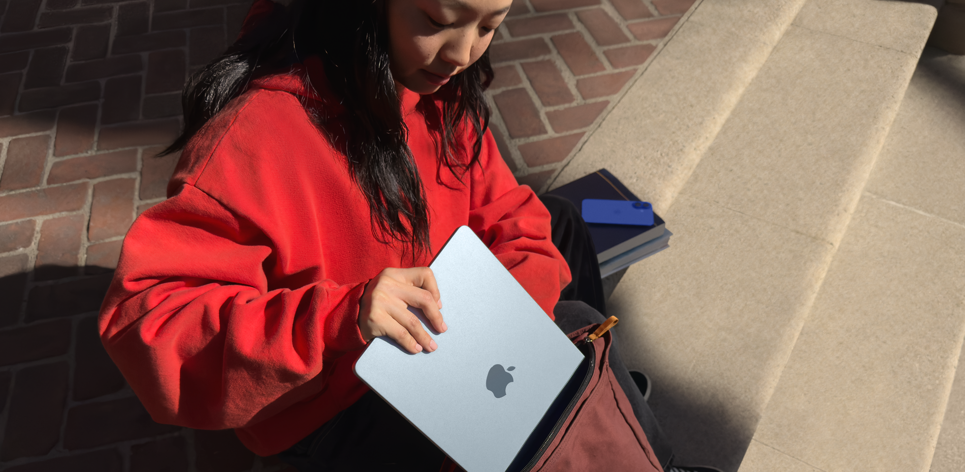 Na MacBooku Air s čipom M4 urobíš bleskovo všetko, čo potrebuješ, a batéria mu vydrží až do 18 hodín. Máš na výber zo štyroch nádherných farieb vrátane krásnej nebeskej modrej. S dokonale prenosným MacBookom Air sa môžeš pustiť prakticky do čohokoľvek – nech si kdekoľvek.