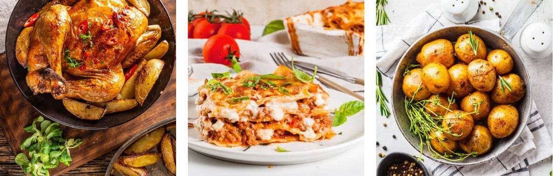 Vo chvíli, keď sa bude piecť chrumkavé kura, na inej úrovni sa môže chystať príloha – napríklad americké zemiaky či zelenina. Pečenie na viacerých poschodiach zároveň šetrí čas aj energiu.