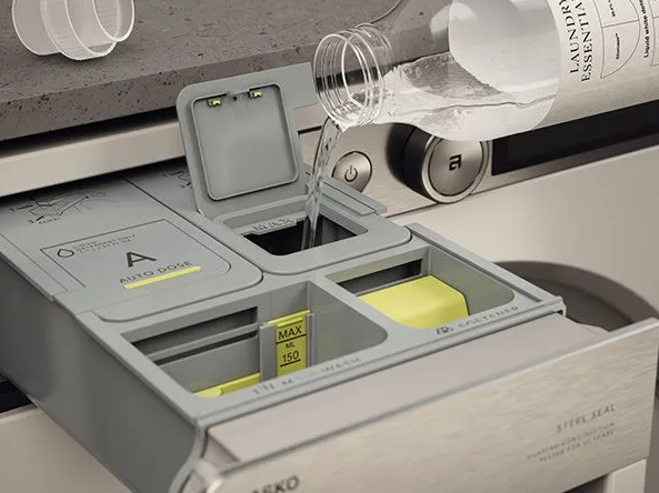 Funkcia automatického dávkovania Auto Dose je vybavená dvoma vyberateľnými nádržkami s objemom 1,1 l na prací prostriedok a aviváž, ktoré vystačia až na 27 pracích cyklov. Senzory priebežne sledujú množstvo prostriedku aj počet zostávajúcich cyklov. Auto Dose zaisťuje dokonalé pranie bez predávkovania, čím znižuje spotrebu aj dopad na životné prostredie. Na individuálne použitie sú k dispozícii aj manuálne priehradky.