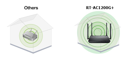 Zásluhou vylepšeného výkonového zosilňovača a dvoch odnímateľných antén s veľkým ziskom, ktoré zaisťujú väčší dosah a silnejší signál, je tento router ideálny na použitie vo väčších domoch a kanceláriách. Okrem väčšieho pokrytia používatelia získajú taktiež výhody rýchleho bezdrôtového pripojenia štandardu 802.11ac, ktoré uspokojí všetky potreby.