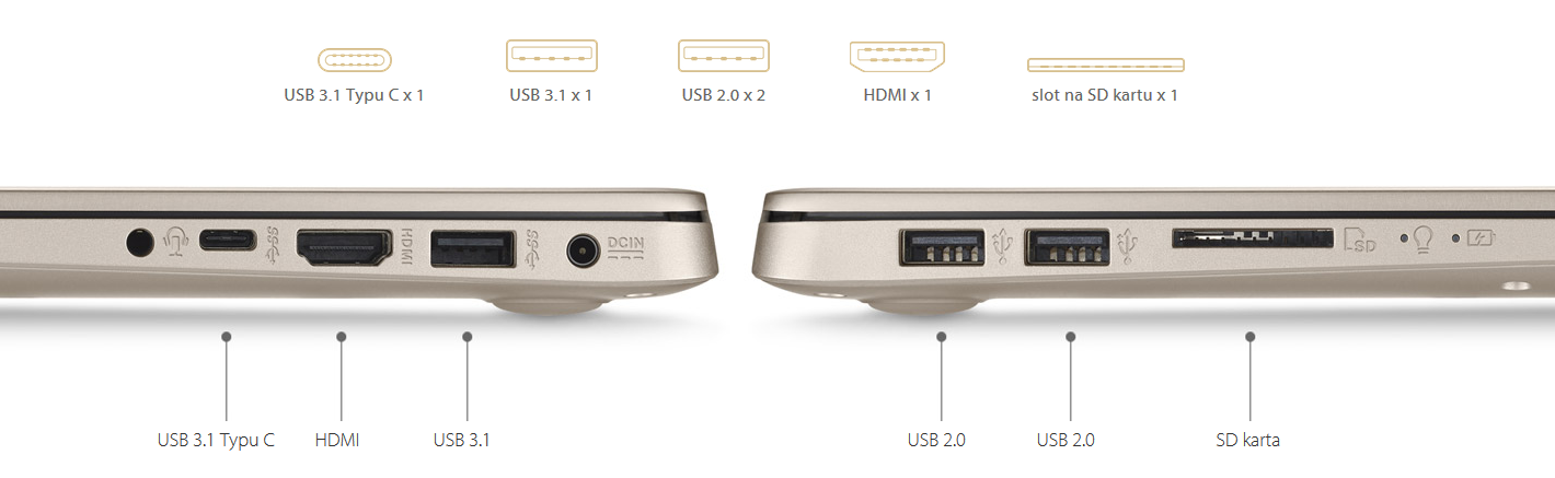 ASUS VivoBook S15 je vybavený portom USB 3.1 s reverzibilným konektorom USB Typu C™. Tento praktický dizajn umožňuje jednoduché a rýchle pripojenie zariadení. USB 3.1 tiež poskytuje až 5x vyššiu rýchlosť prenosu dát než staršie pripojenie USB 2.0! Port USB 3.1, slot pre karty HDMI a SD podporujú bezproblémovú kompatibilitu so širokou škálou periférií, displejov a projektorov.