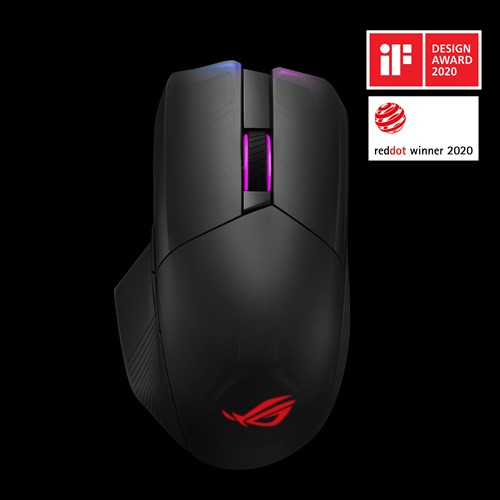 ROG Chakram je káblová a bezdrôtová herná myš s rozlíšením 16,000 dpi a programovateľným, odnímateľným joystickom.