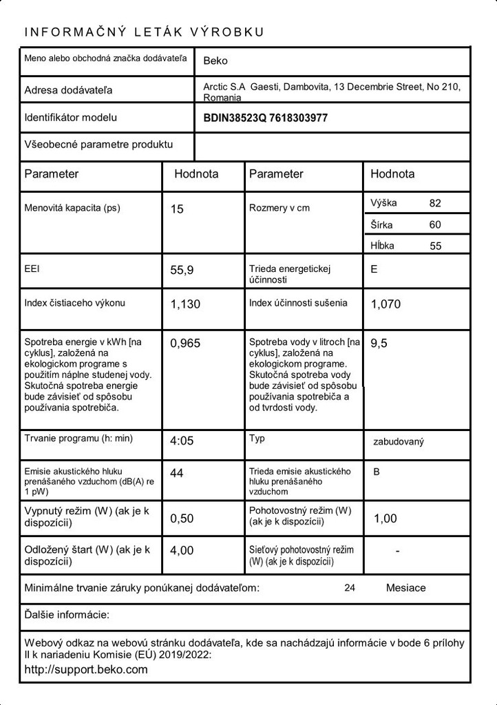 BEKO BDIN38523Q - Umývačka riadu zabudovateľná