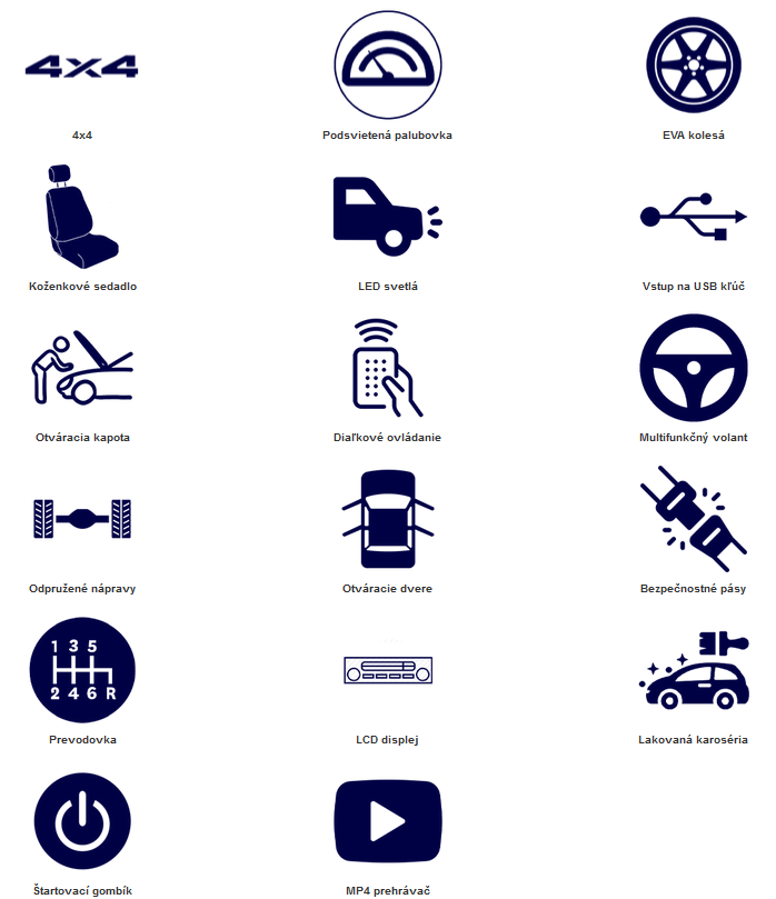 Otváracie dvere, zvukové efekty, indikátor stavu kapacity batérie na MP4 Prehrávači, 2 rýchlosti vpred a 1 vzad, LED svetlá a diaľkový ovládač tiež nechýbajú z výbavy. Detailné vypracovanie a kvalitné spracovanie je dôkazom výnimočnosti modelu G 4x4².