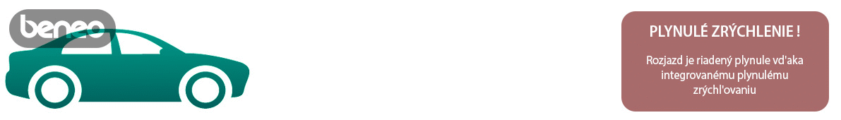 Plynulé zrýchlenie - Po zošliapnutí plynového pedálu sa autíčko rozbehne, pričom je rozjazd riadený elektronicky tak, aby bol plynulý vdaka integrovanému plynulému zrýchlovaniu.. Vďaka tomu pri zošliapnutí pedálu nedochádza k nepríjemnému trhnutiu pri rozjazde.