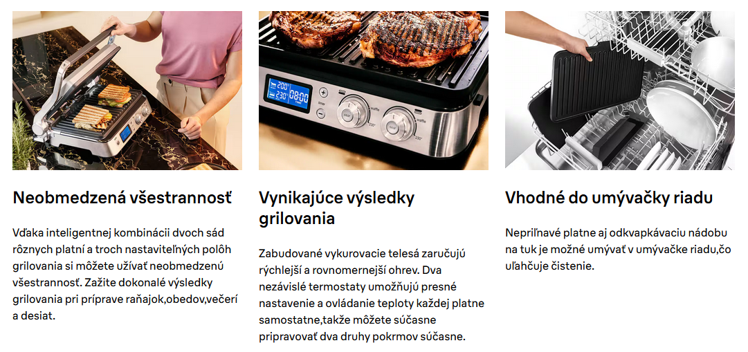 Umožňuje presné nastavenie teploty jednotlivých platní,aby ste mohli súčasne pripravovať dva druhy jedál pri dvoch rôznych teplotách.