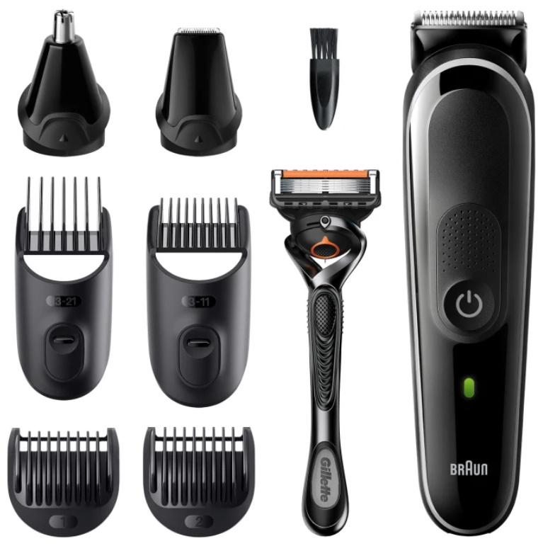 Multifunkčný zastrihávač Braun MGK 5360 8 v 1 je určený na zastrihávanie fúzov, vlasov a chĺpkov v nose/ušach. Obsah balenia: multifunkčný zastrihávač, hrebeň 3-11 mm, hrebeň 13-21 mm, 2× hrebeň s pevnou dĺžkou 1 a 2 mm, zastrihávač nosných/ušných chĺpkov, presná zastrihávacia hlavica, holiaci strojček Gillette ProGlide, čistiaca kefka a nabíjačka SmartPlug.