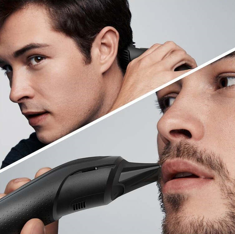 Multifunkčný prístroj Braun MGK 5360 8 v 1 je určený na zastrihávanie fúzov, vlasov a chĺpkov v nose/uši. Dosiahnete 100 % kontrolu od hlavy až po päty. Súprava obsahuje dlhý hrebeň na udržiavanie dlhých fúzov (13-21 mm) a krátky hrebeň na krátke fúzy (3-11 mm). Pomocou dvoch dvojúčelových nastaviteľných hrebeňov si môžete vlasy zastrihnúť presne na požadovanú dĺžku - od 0,5 do 21 mm. S prídavnou hlavou zastrihávača Braun môžete vytvárať presné línie a kontúry na krku a lícach. Hlavu možno bezpečne čistiť pod tečúcou vodou. Lítium-iónová batéria má dlhú životnosť a poskytuje až 100 minút prevádzky (plné nabitie za 1 hodinu, 5 minút rýchleho nabíjania pre jedno zastrihávanie). Perfektná multifunkčná súprava, ktorá kombinuje 8 rôznych zastrihávaní s jedným zariadením.