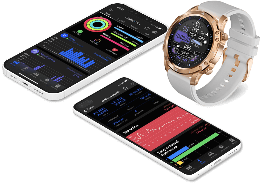 Moderné, outdoorové fitness smart hodinky Carneo ADVENTURE HR+ druhej generácie v elegantnom zlatoružovom prevedení disponujú okrúhlim SUPER AMOLED farebným displejom, ktorý chráni extrémne tvrdé Gorilla glass sklo. Umožňujú meranie srdcového tepu, stresu, BMI, prejdenej vzdialenosti, monitorovanie spálených kalórií či kvality spánku. Ich súčasťou je 380mAh batéria s výdržou až 5 dní. Podľa certifikácie IP67 sú odolné voči vode a prachu. Sú kompatibilné s operačným systémom iOS a Android. Hodinky majú na dotyk príjemný silikónový remienok v bielej farbe, ktorý je možné vymeniť za remienok v inej farbe či kožený alebo kovový a tým pádom zmeniť hodinkám športový vzhľad za manažérsky. Vkusný outdoorovo-luxusný dizajn sa ľahko kombinuje k obleku či voľnočasovému outfitu. Hodinky aj aplikácia sú kompletne v slovenčine, takže si budete určite spolu dobre rozumieť.