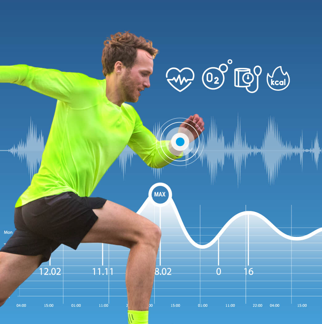 •Displej sa rozsvieti jednoduchým otočením zápästia, čítať čas alebo pristupovať k hlavným informáciám je tak možné najprirodzenejším spôsobom, rovnako ako pri pohľade na klasické hodinky.