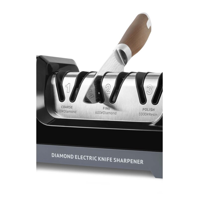 S trojicou brúsnych kotúčov – dva diamantové a jeden živicový, dosiahnete profesionálny výsledok priamo vo vašej kuchyni a bez rizika zničenia cenných nožov.