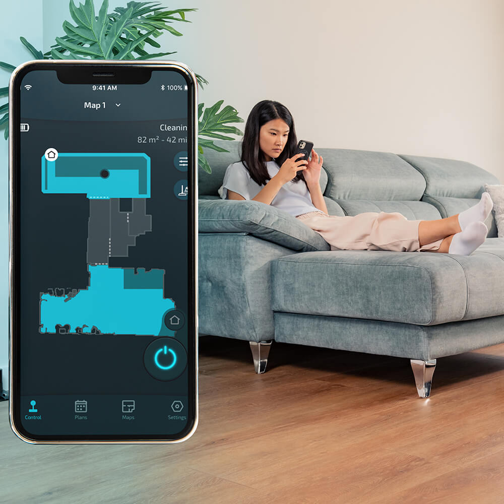 Robotický vysávač dokáže zmapovať viaceré poschodia a zapamätá si až 5 máp. Tie sa dajú rozdeliť na jednotlivé miestnosti so zakázanými zónami. Užijete si tak dôkladné a personalizované upratovanie aj vo viacposchodových domoch či na chate.