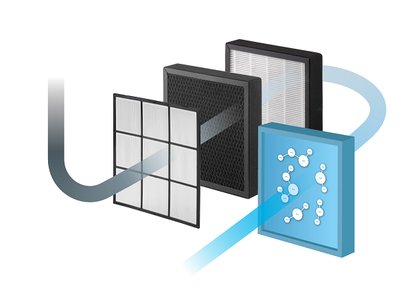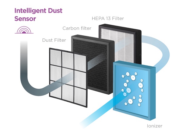 Filtrácia je najdôležitejšia časť čističky, ktorá rozhoduje o výslednej kvalite vzduchu. Model CA1030 je vybavený 4-násobným filtračným systémom, ktorý zachytí znečistené látky a zamedzí ich ďalšiemu šíreniu. Dokáže odstrániť až 99 % škodlivín obsiahnutých vo vzduchu. Každá jednotlivá filtračná vrstva zachytí špecifické druhy nečistôt a vzájomnou súčinnosťou je dosiahnuté dokonale čisté ovzdušie vo vašej domácnosti. Vďaka pokročilej technológii si sama postráži aktuálny stav filtrov a upozorní na nutnosť ich výmeny.
