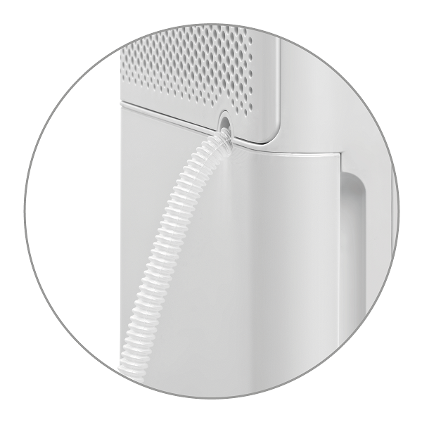 Odvlhčovač OV2012 ponúka 2 stupne rýchlosti výkonu a počas jedného dňa dokáže skondenzovať 12 l vody. V prípade, že je nádoba na vodu plná, prístroj sa vypne a rozsvieti sa signalizácia plného zásobníka. Pokiaľ potrebujete po dlhší čas vysúšať vlhké priestory, použite hadicu pre trvalý odtok vody. Voda bude odvádzaná priamo do kanalizácie a prístroj bude pracovať nepretržite.