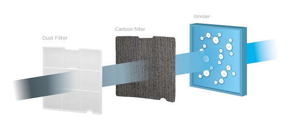 Ionizátor osviežuje a prečisťuje vzduch, zvyšuje množstvo záporne nabitých iónov, ktoré neutralizujú zápachy vo vzduchu a pohlcuje kladne nabité častice prachu, vírusov a baktérií