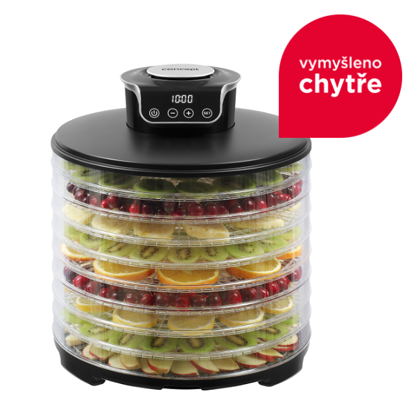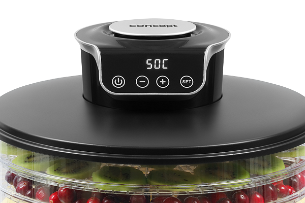 Sušička ovocia Concept SO3010 je vybavená 9 sušiacimi platmi a ponúka inovatívne konštrukčné riešenie. Motor sušičky je umiestnený vo veku, takže je počas sušenia chránený pred poškodením, ktoré by mohli spôsobiť odkvapkávajúce šťavy alebo omrvinky z usušených potravín.