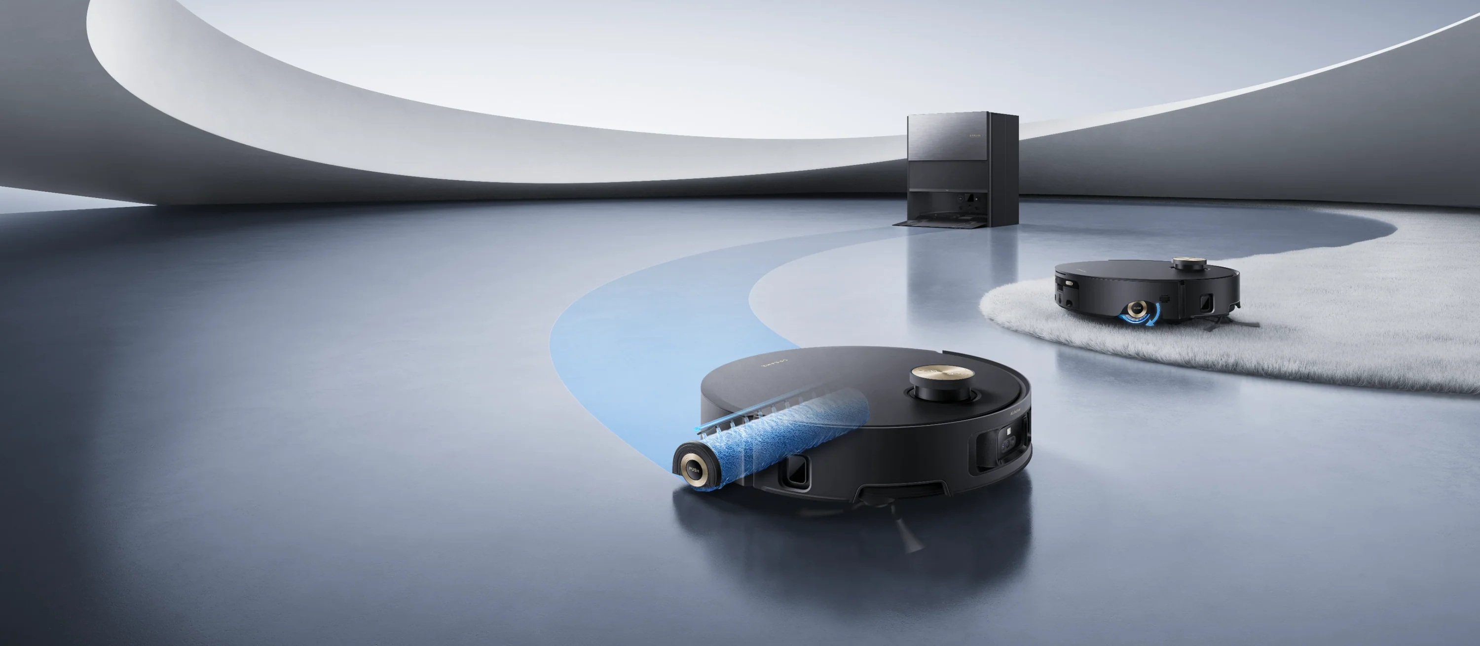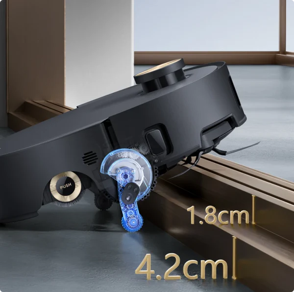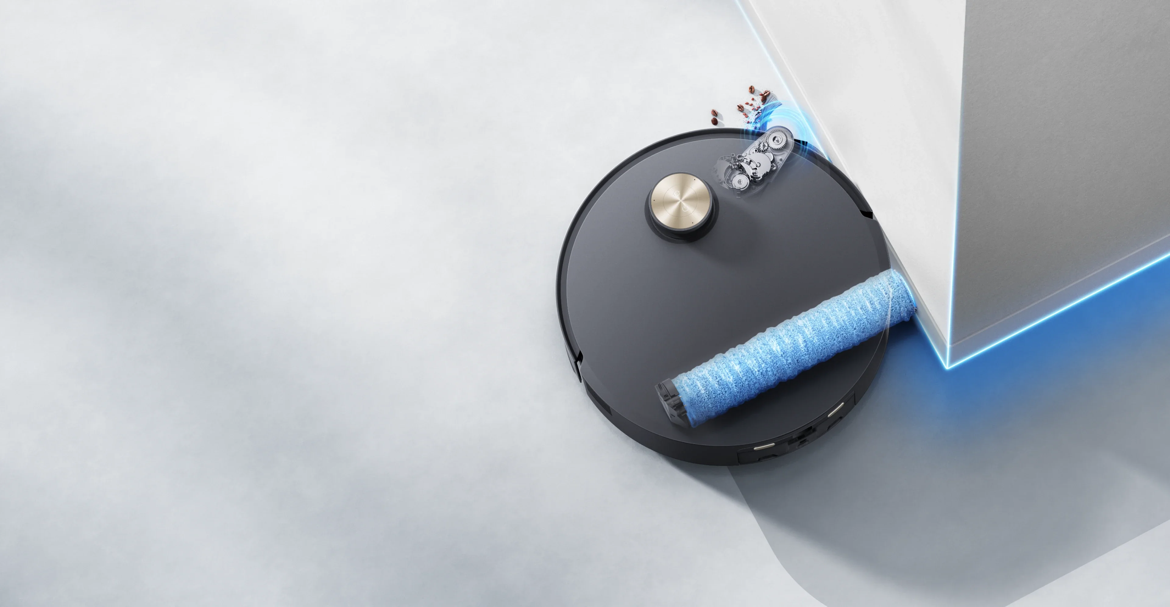 Zakrytie valčeka AutoSeal™ je inteligentná technológia DREAME, ktorá sa stará o koberce tým, že automaticky utesní valčekový mop pri detekcii kobercov, čím sa zabraňuje ich navlhnutiu a zápachu.