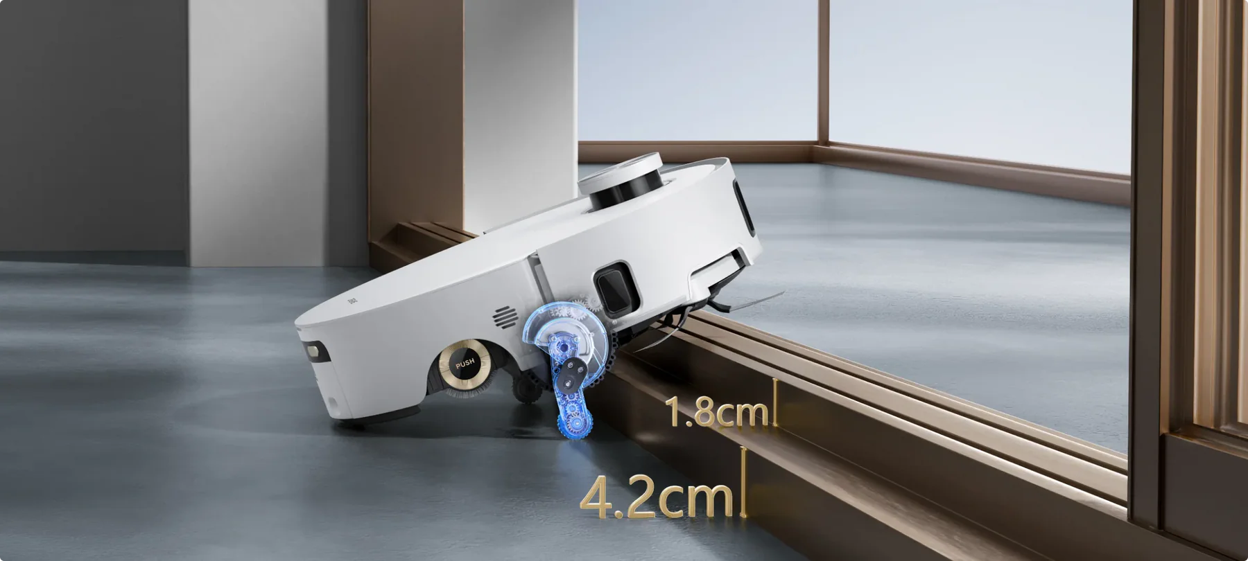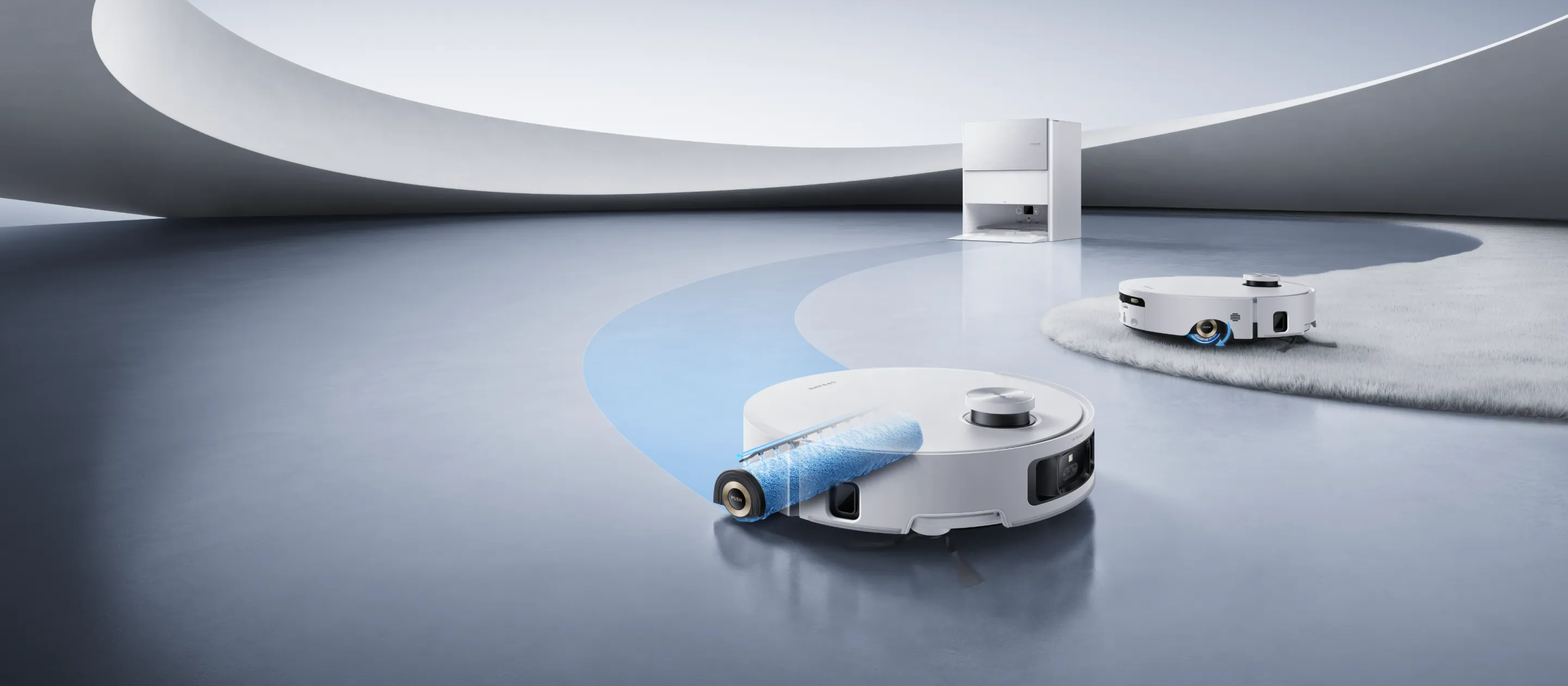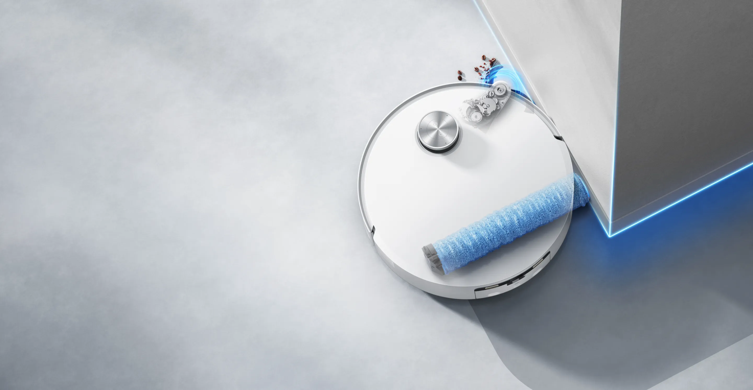 Zakrytie valčeka AutoSeal™ je inteligentná technológia DREAME, ktorá sa stará o koberce tým, že automaticky utesní valčekový mop pri detekcii kobercov, čím sa zabraňuje ich navlhnutiu a zápachu.