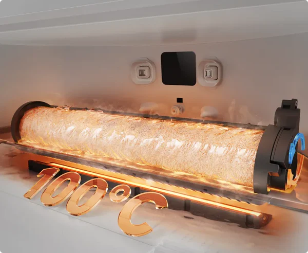 Po intenzívnom čistení aktivuje valček s technológiou ThermoHub™ vysokoteplotné samočistenie, ktoré dosahuje teplotu až 100 °C, aby sa odstránili zvyšky, pachy a zároveň sa valček osviežil.