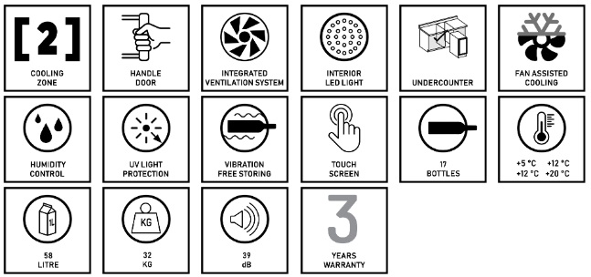 Dunavox DAUF-17.58 je exkluzívná dvojzónová vinotéka. Jej elegantný vzhľad a masívne nerezové madlo z nej robia reprezentatívny model, ktorý sa bude vynímať v modernom kuchynskom prostredí. Fľaše sa ukladajú na masívne drevené police.