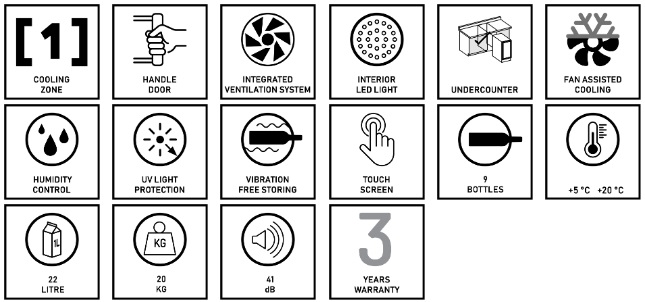 Dunavox DAUF-9.22 je vylepšeným variantom najmenšieho kompresorového modelu DX-7.20. Teraz s kapacitou až 9 fliaš vína. Vinotéka je k dispozícii v čiernom alebo nerezovom prevedení. Ideálny spotrebič pre použitie v malých kuchyniach s limitovanými priestormi. Fľaše sa ukladajú na drevené lamely vystupujúce z bočných častí.