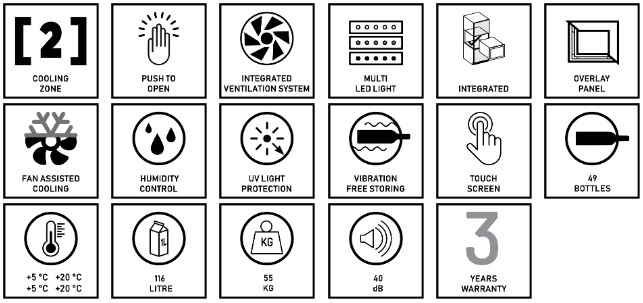 Dunavox DAVG-49.116 je dvojzónová vstavaná kompresorová vinotéka, ktorej elegantný vzhľad ju predurčuje na použitie v moderných kuchyniach. Tónované sklo aj push-to-open technológia otvárania dvierok z nej robia ozvlášť reprezentatívny model. Dvere vinotéky sa otvárajú zatlačením do ľavého horného rohu. Model disponuje kapacitou až 49 fliaš vína, ktoré sa ukladajú na kvalitné drevené police vyrobené z bukového dreva.