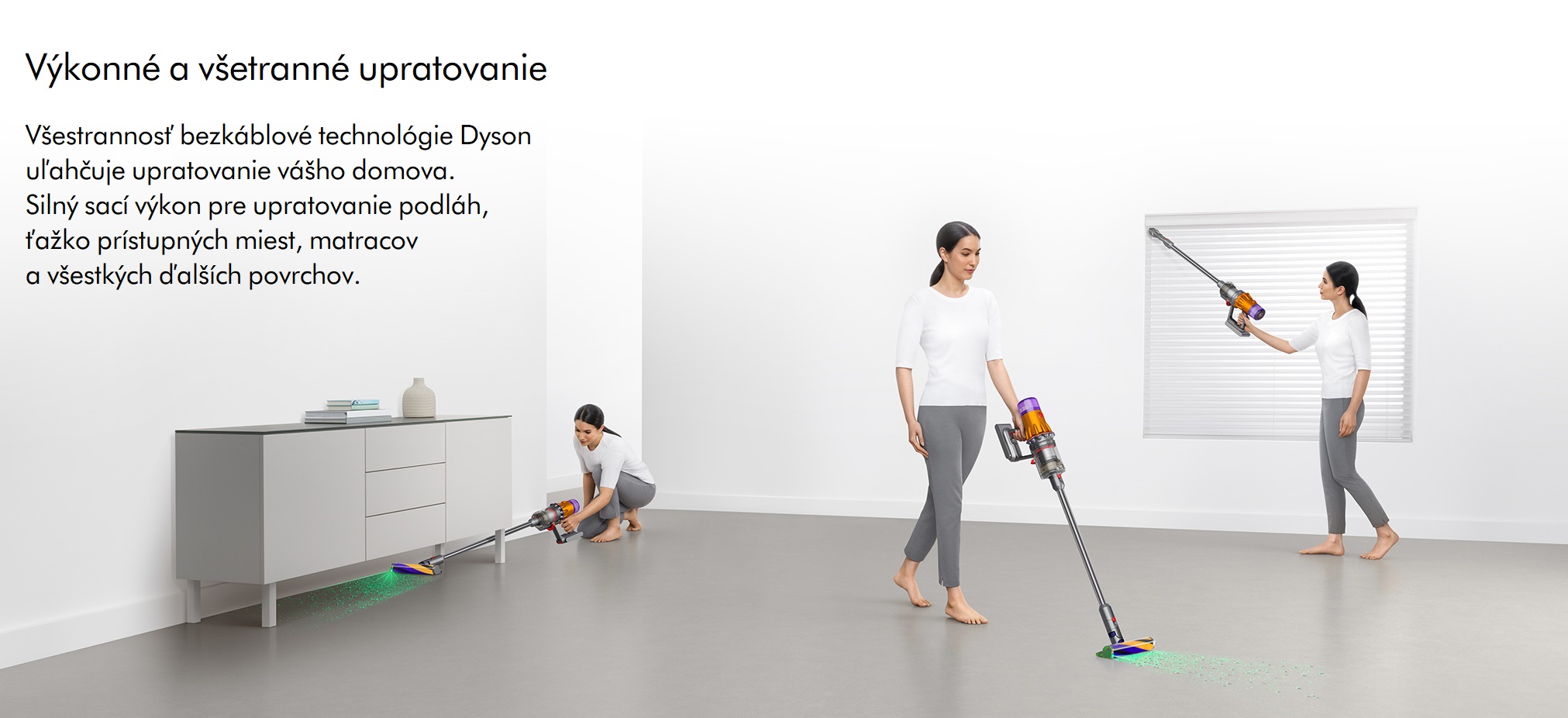 Všestrannosť akumulátorovej technológie Dyson vám uľahčí upratovanie domácnosti. Vysoko účinné upratovanie podláh, ťažko prístupných miest a matrac.