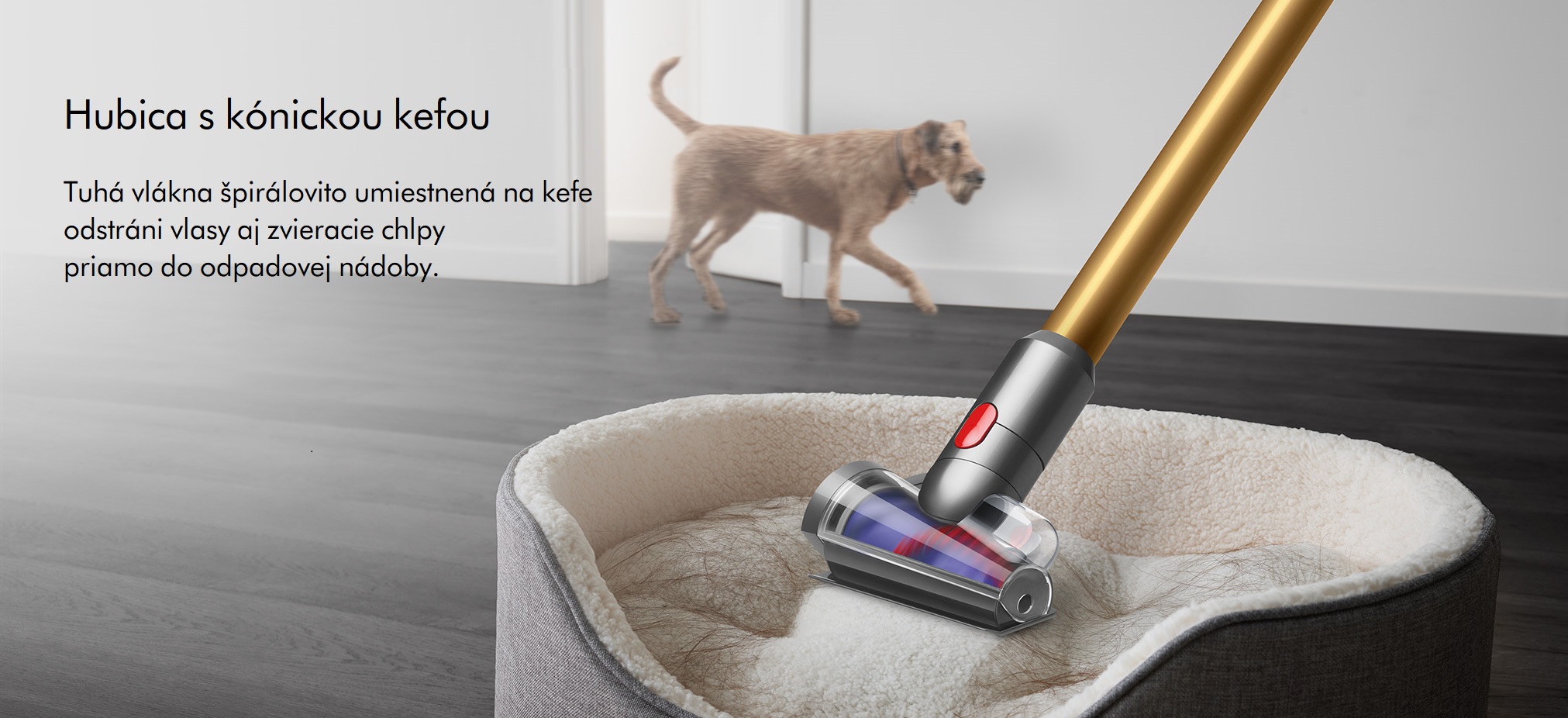 •Hubica s kónickou kefou. Vysaje dlhé vlasy aj zvieracie chlpy.