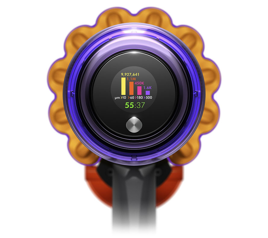 Piezo senzor meria množstvo prachových častíc, takže vysávač Dyson V15 Detect Absolute 2023 vie, kedy má v režime Auto zvýšiť výkon.