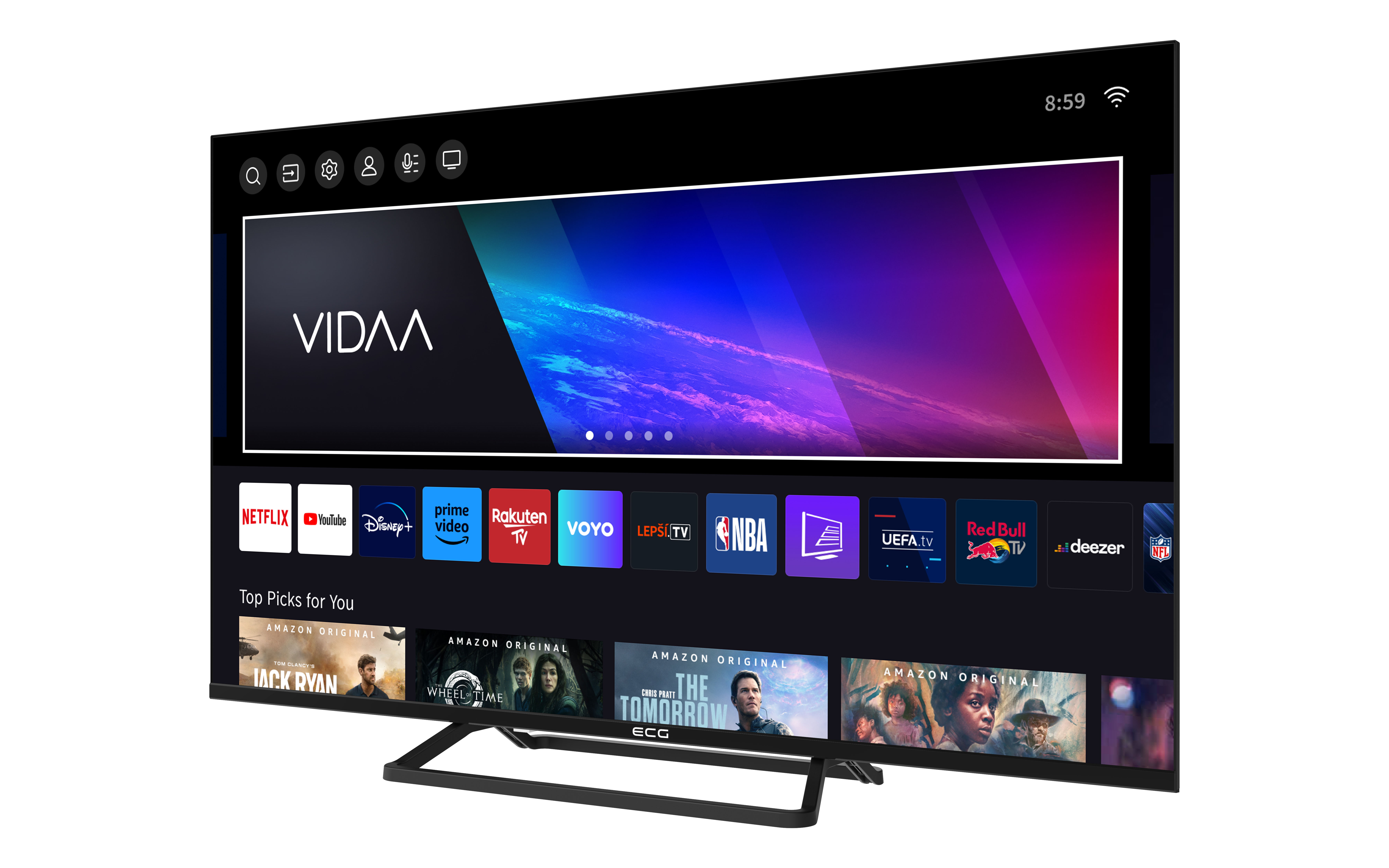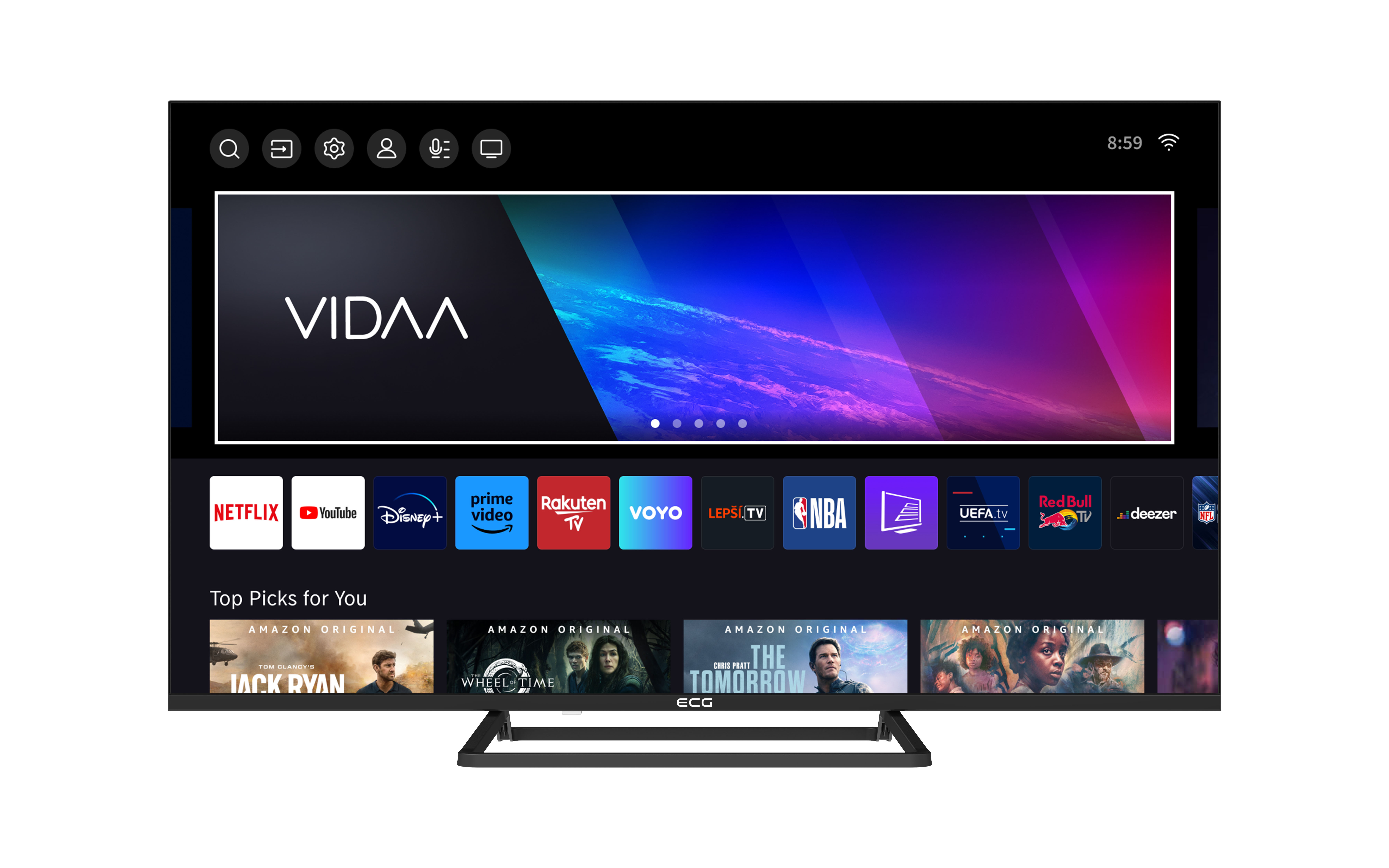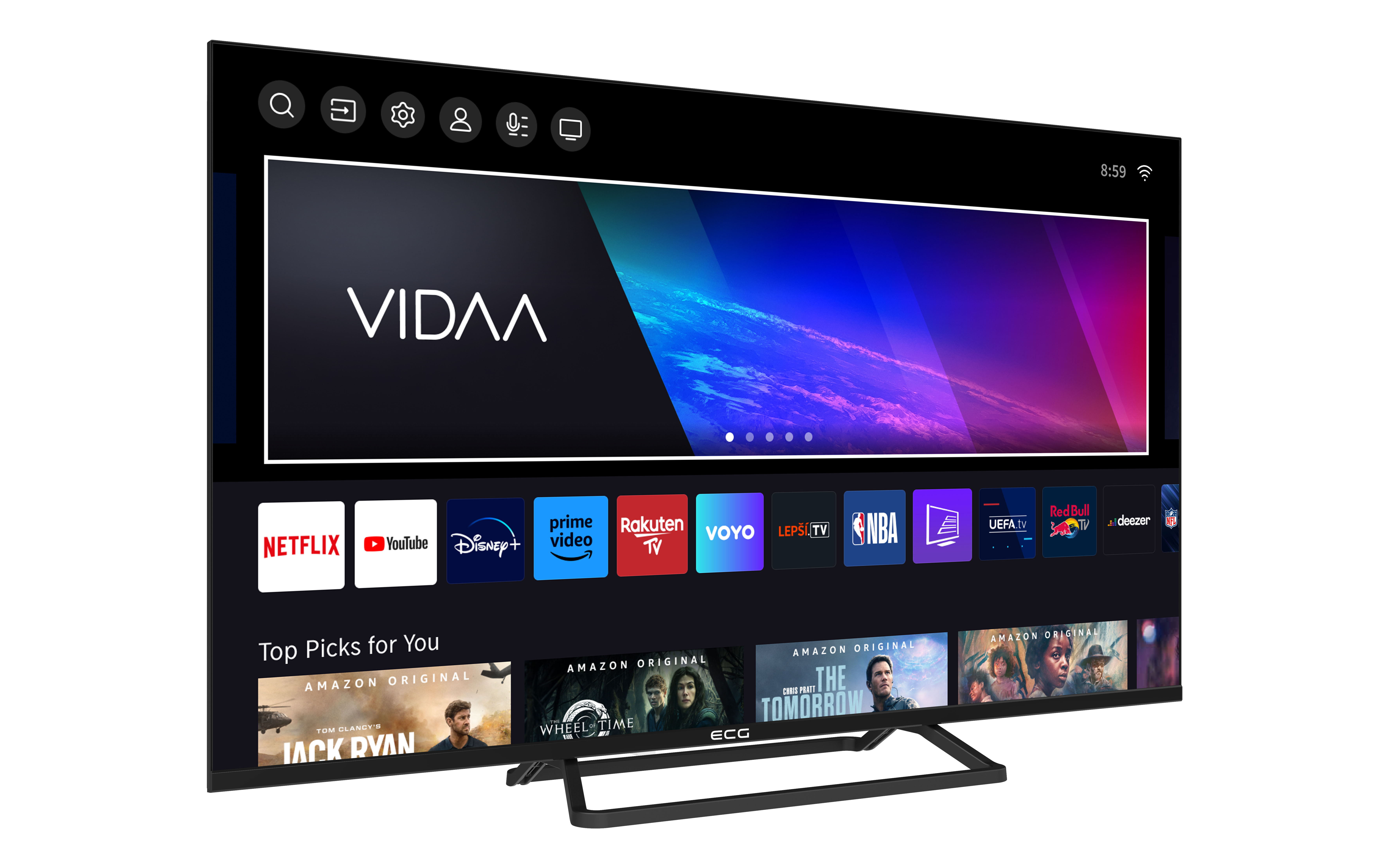 Medzi vami a nekonečnou zábavou nestojí nič v ceste. Operačný systém VIDAA totiž myslí na všetko, a tak má pripravené to pravé pre každého člena vašej rodiny. V jeho ponuke nechýbajú aplikácie populárnych streamovacích platforiem, ako sú Netflix, YouTube, Disney+ alebo napríklad Amazon Prime Video – k tým hlavným máte jednoduchý prístup aj vďaka špeciálnym tlačidlám na diaľkovom ovládači. Ďalej vás určite poteší fakt, že je v operačnom systéme rovno zabudovaná aj možnosť hlasového ovládania. A aby bolo používanie TV ECG ešte pohodlnejšie, k operačnému systému VIDAA je pripravená aj prehľadná mobilná aplikácia na jednoduché ovládanie televízora telefónom.