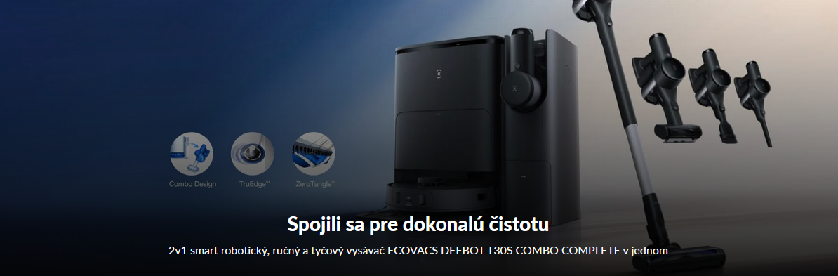 Robotický vysávač DEEBOT T30S COMBO COMPLETE Cyklónový vysávač s nadstavcami ručný/tyčový vysávač Stanica a napájací kábel duálna all-in-one OMNI Mopovacie handričky 1 pár Prachové vrecko 1 ks Bočná kefka 1 ks Filter 1 ks |