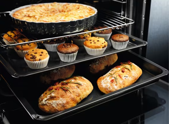 Vychutnajte si viacúrovňové pečenie. Ventilátor v zadnej stene sa postará o rovnomerné rozloženie teploty v celej rúre. Môžete teda piecť bez obáv až na 3 úrovniach naraz. Funkcia rýchleho zohrievania zaistí, aby bola rúra správne rozohriata, keď ju budete potrebovať.