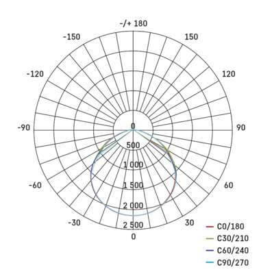 Vďaka použitej technológii LED a tvaru difúzora reflektor osvetľuje široký uhol 120°. Lúč svietidla je silný a zároveň poskytuje dostatočne široký uhol vyžarovania.