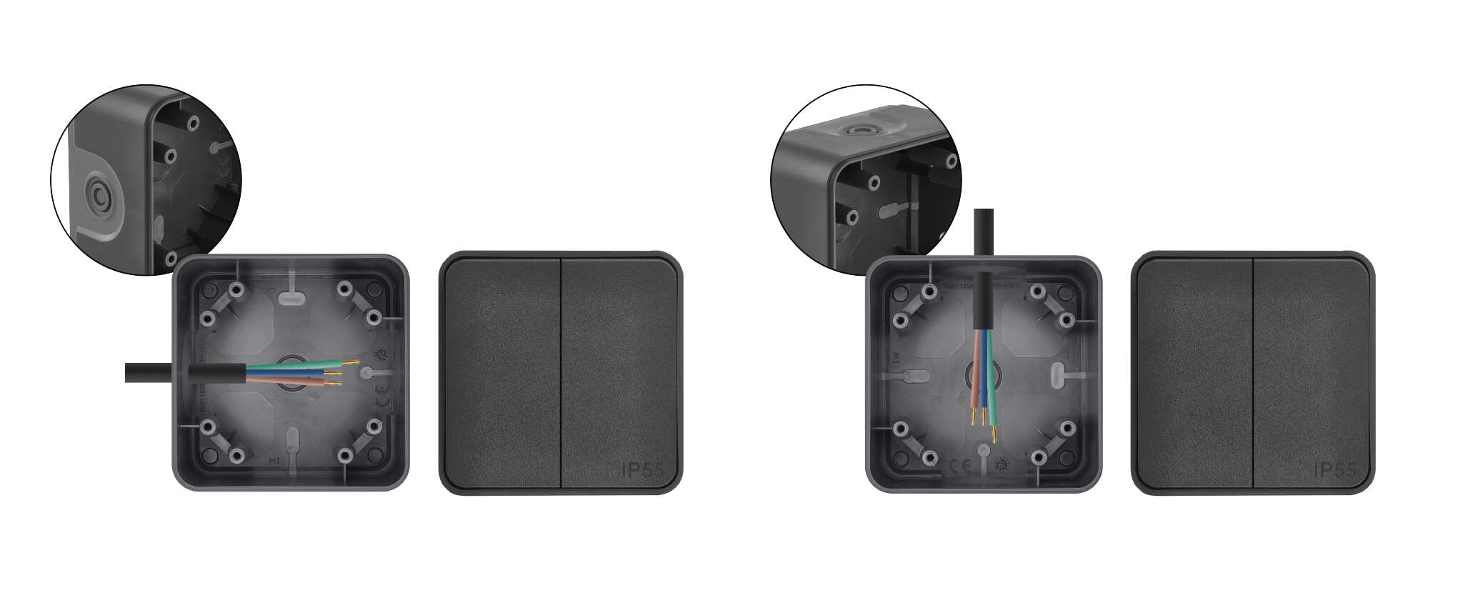 Flexibilné tesnenie chráni pred nežiaducimi vplyvmi prostredia. Vstup káblov umožňuje jednoduché pripojenie kábla alebo rukáva, čím zaručuje univerzálnosť pre akýkoľvek typ inštalácie.