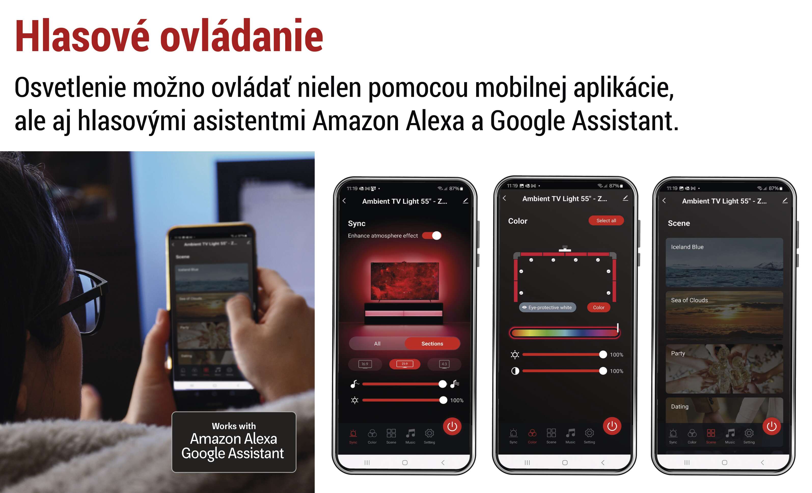 - kompatibilný s hlasovými asistentmi Amazon Alexa a Google Assistant