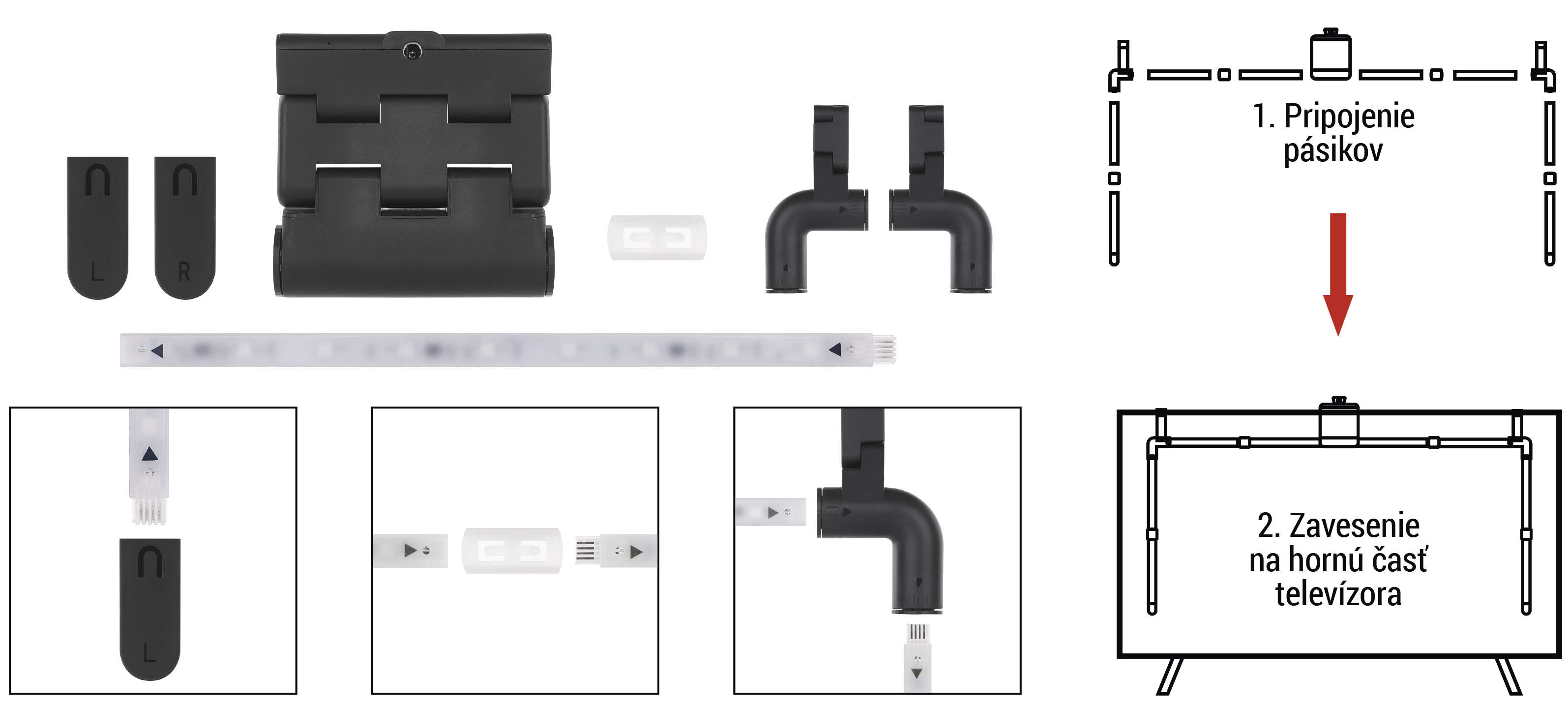 Už žiadne lepenie. LED segmenty sa rýchlo pripevnia k televízoru pomocou špeciálnych držiakov, ktoré sa dajú ľahko kedykoľvek odstrániť a znova pripevniť.