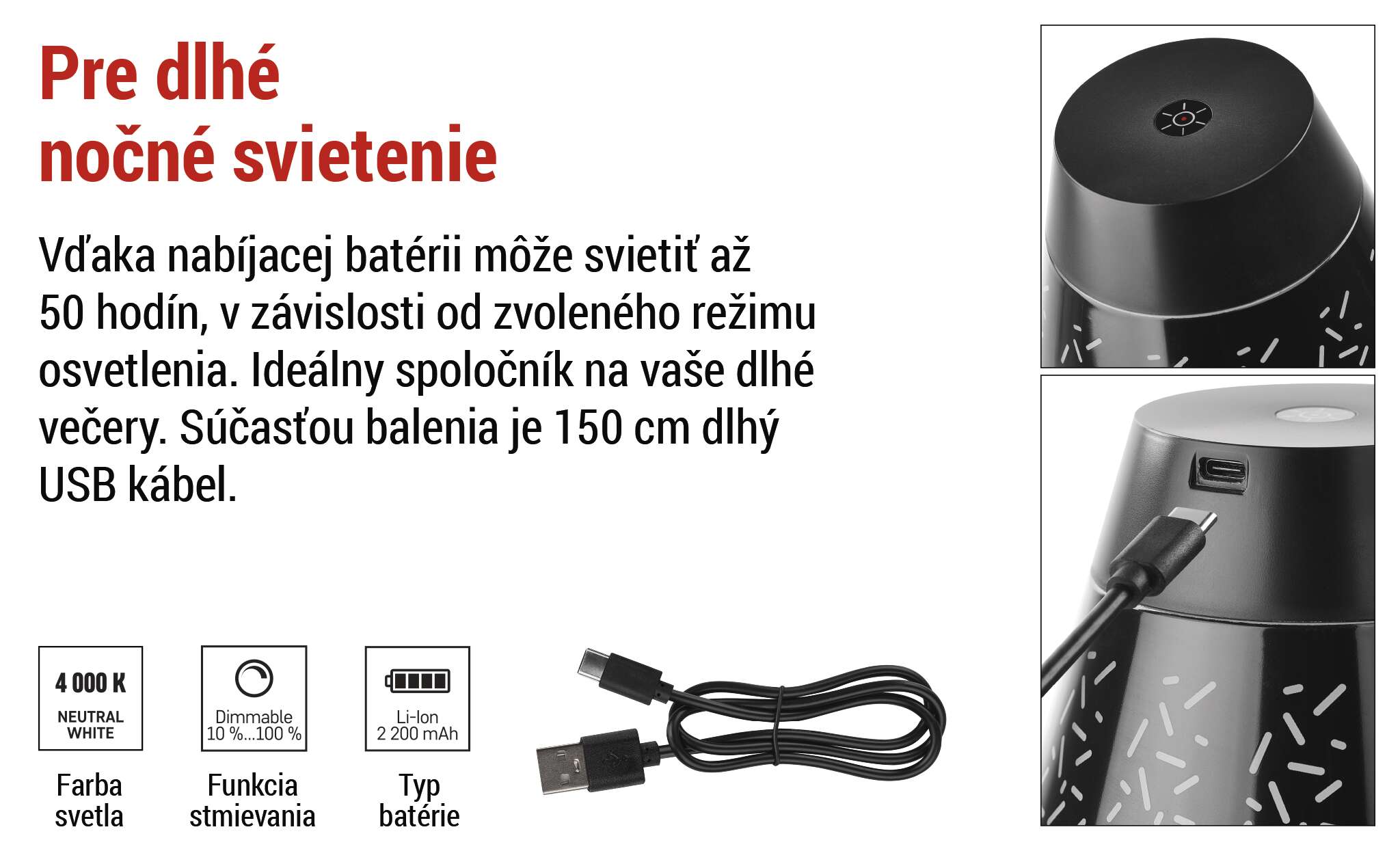 Emos GRACE čierna - LED stolná lampa nabíjacia