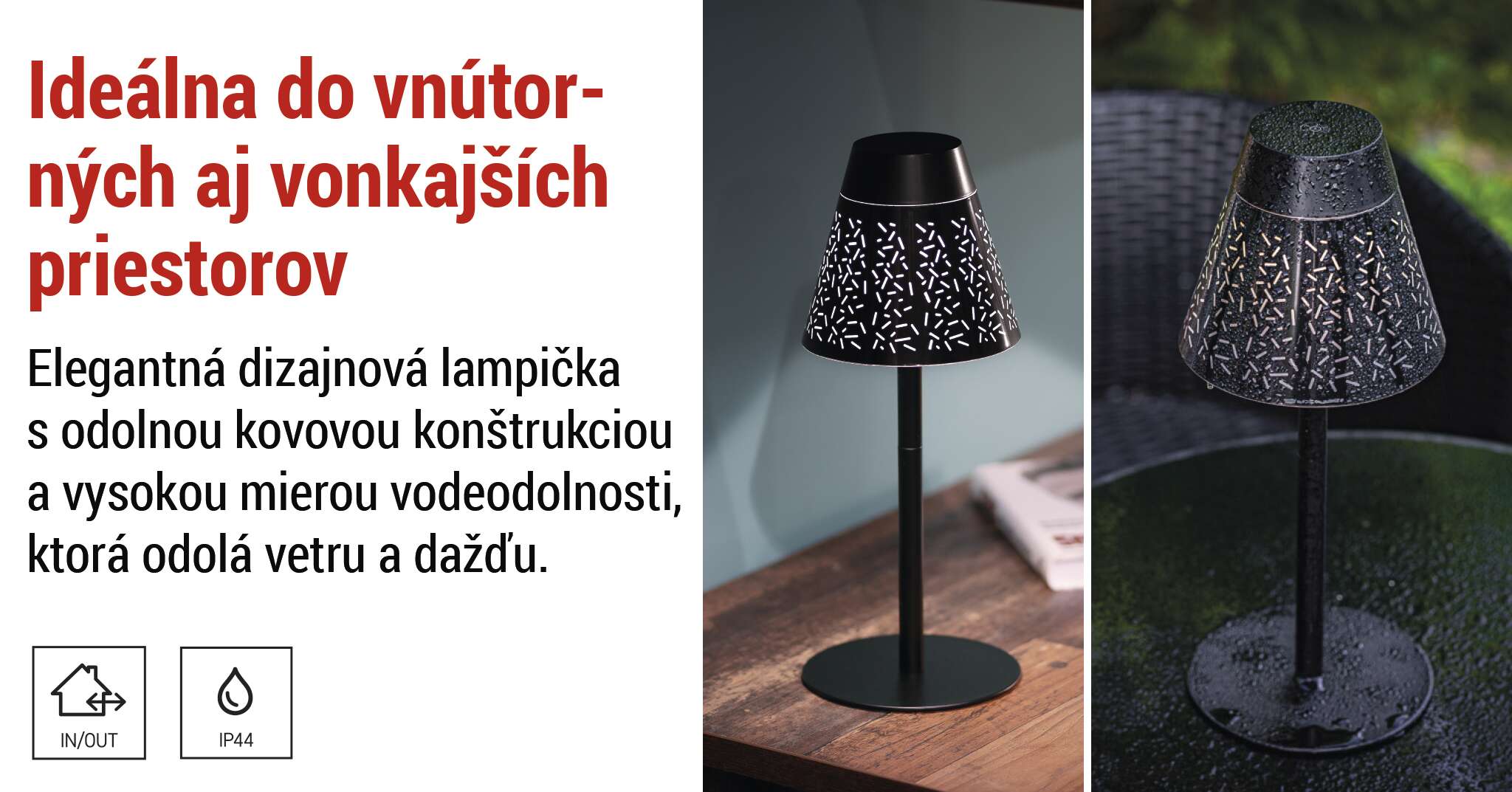 Objavte dokonalú kombináciu elegancie a funkčnosti s našou stolnou lampou GRACE. Štýlový čierny dizajn a možnosť stmievania vytvárajú dokonalú atmosféru na každom pracovnom stole alebo nočnom stolíku. Pevná konštrukcia s vynikajúcou stabilitou zaručuje bezpečné a spoľahlivé osvetlenie vašej domácnosti. Vďaka odolnosti voči vode je táto lampa ideálna na vonkajšie použitie, napríklad na verande.