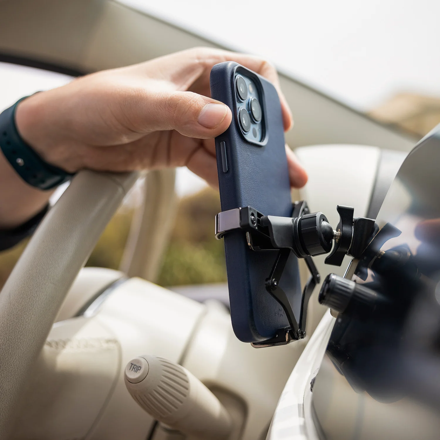 Telefón ľahko vložíte aj vyberiete jednou rukou. Vďaka šikovnému tvarovaniu klieští zostáva voľný prístup k nabíjaciemu konektoru, takže môžete telefón počas cesty pohodlne nabíjať.
