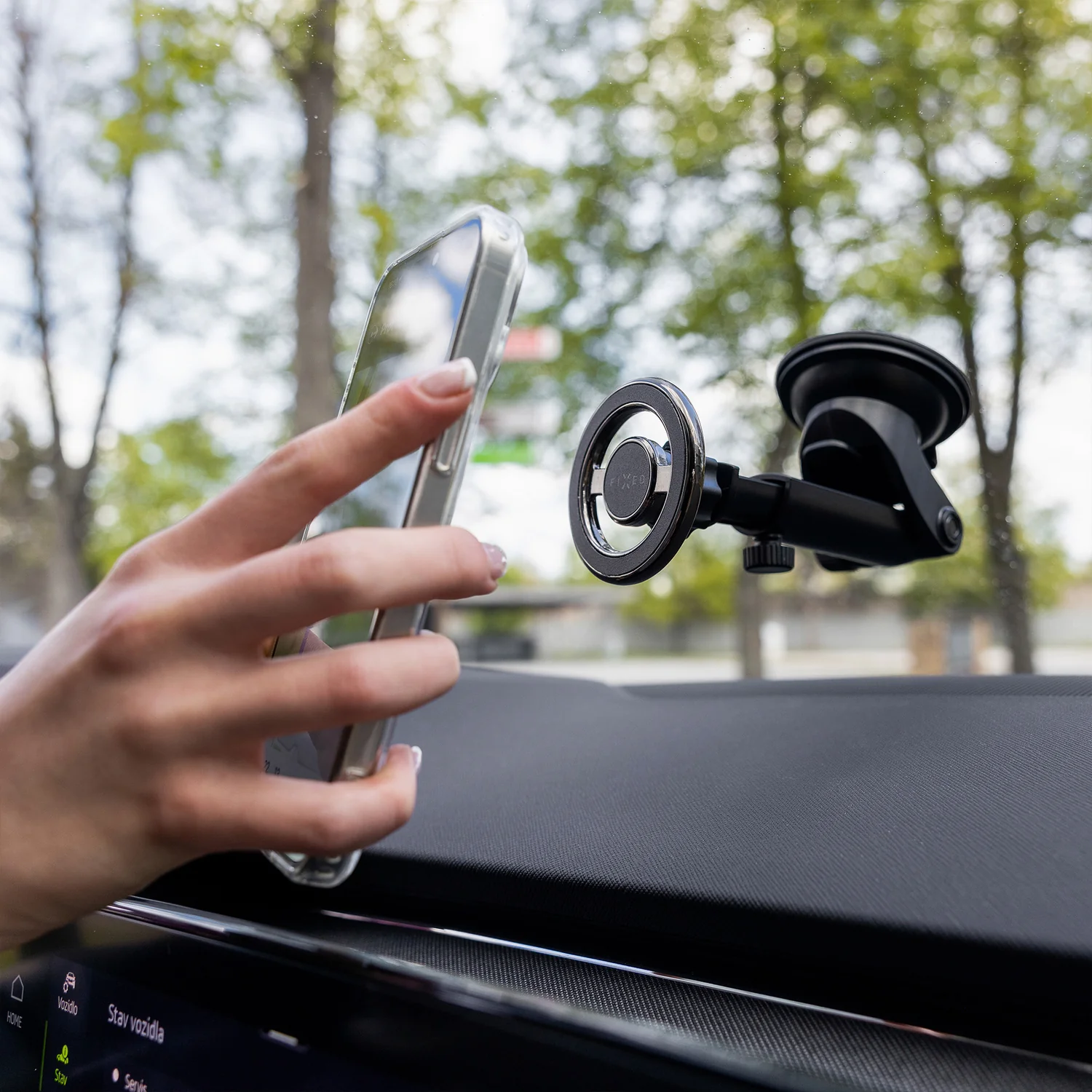 FIXED MagMount XL s prísavkou na sklo alebo palubnú dosku s podporou MagSafe, čierny - Magnetický kovový držiak do auta