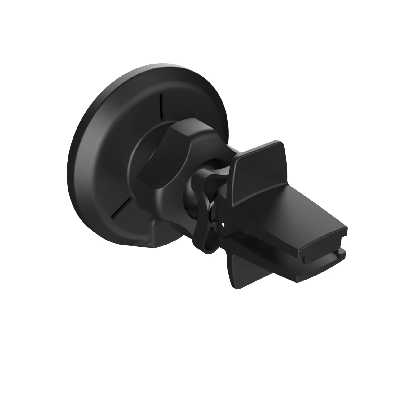 Držiak sa ľahko pripevní do ventilácie pomocou klieští so spätným háčikom, ktorý sa zachytí za lamelu a drží ako pribitý. Ideálny uhol zvládneš nastaviť jednou rukou vďaka otočnému kĺbu a drží na svojom mieste, aj pri ostrých zákrutách alebo výmoľoch.