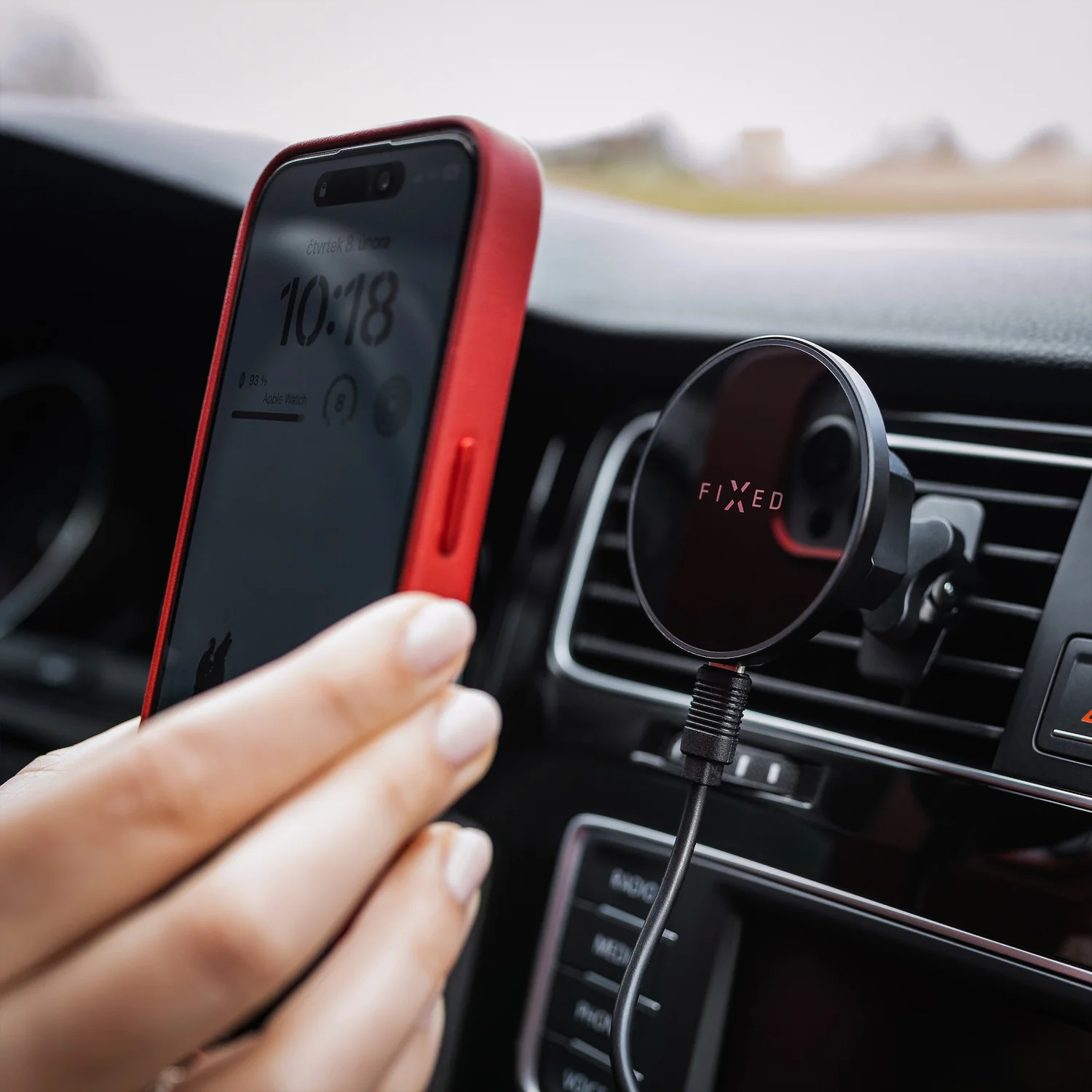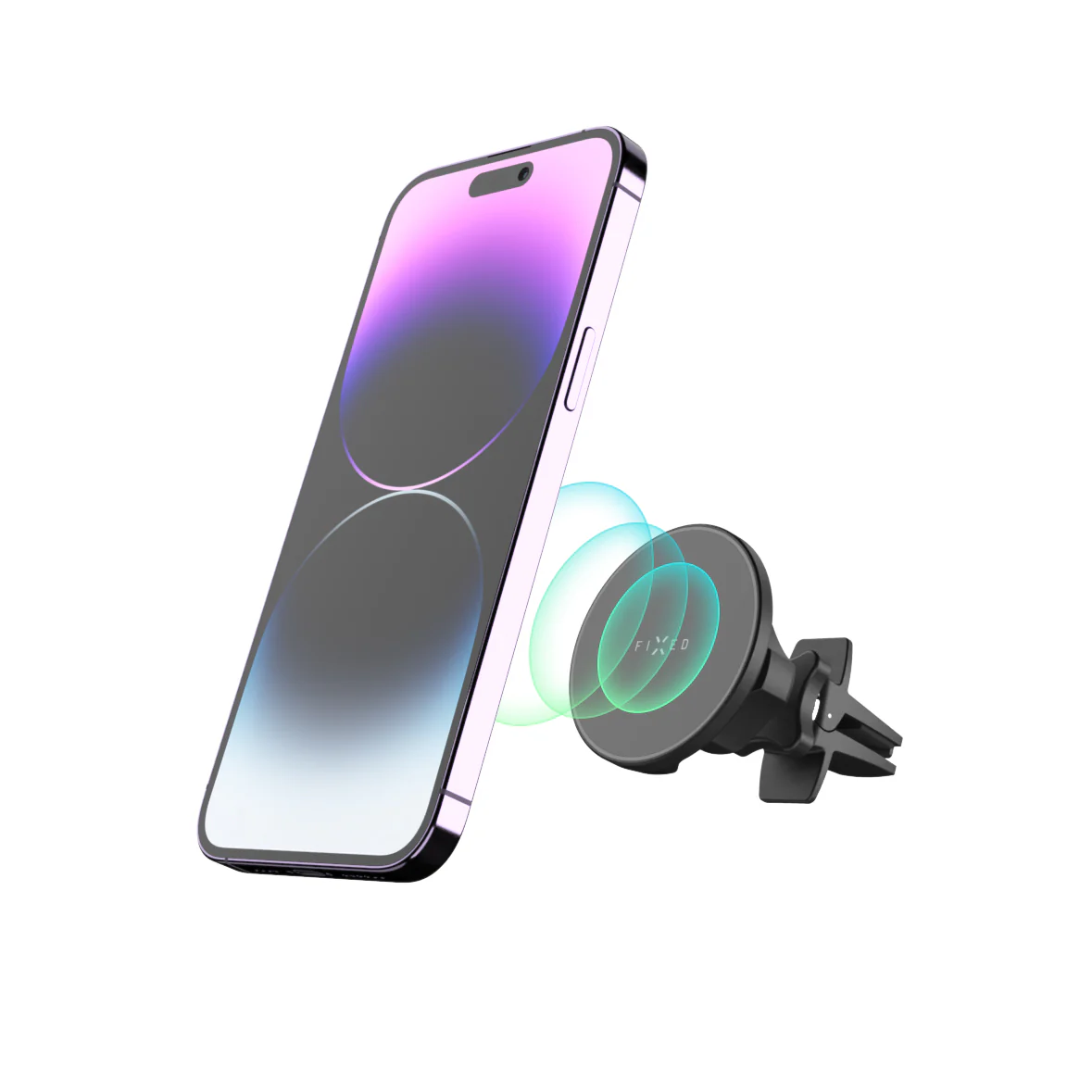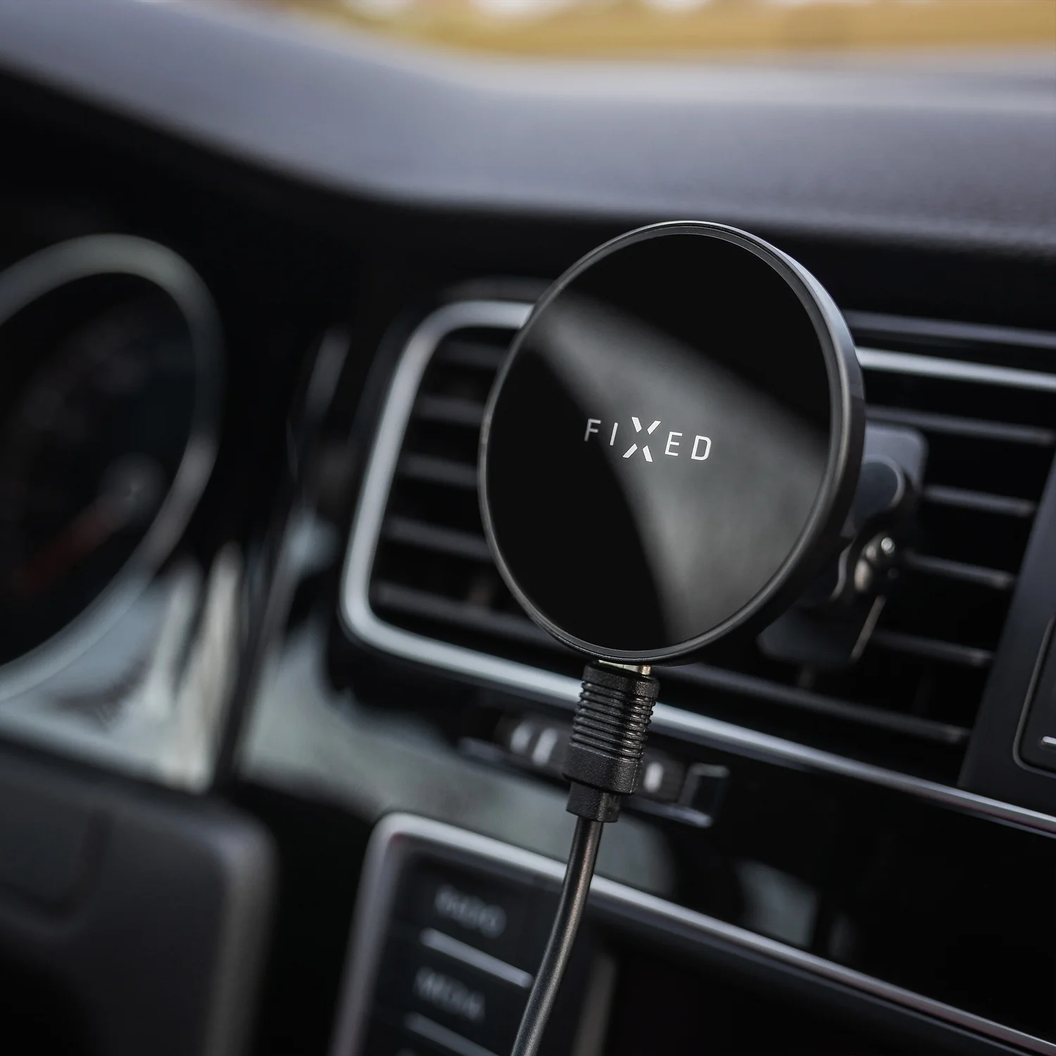 FIXED MagRound s podporou uchytenia MagSafe, 15W, čierny - Držiak s bezdrôtovým nabíjaním