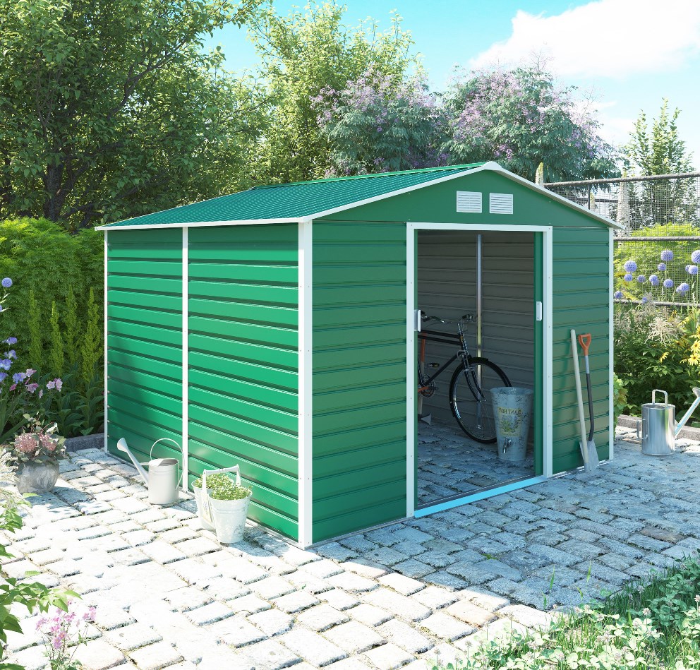 Na pevný pozinkovaný rám primontujete oceľový, pozinkovaný plech s práškovým nástrekom, ktorý je odolný voči zlému počasiu. Súčasťou balenia sú dverné úchyty, vďaka ktorým domček ľahko zaistíte proti nezvaným hosťom.