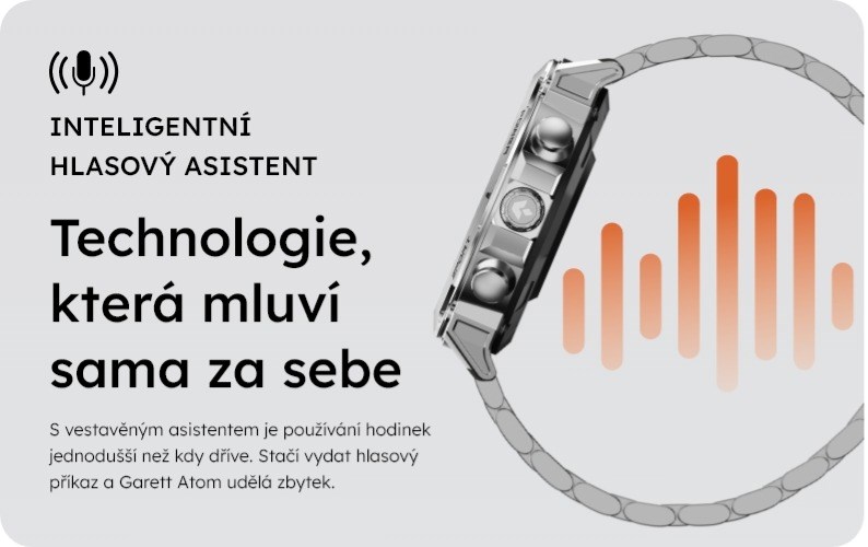 Na každú ďalšiu otázku ti odpovie vstavaný Garett Atom asistent. Stačí, keď ho aktivuješ hlasovým príkazom.