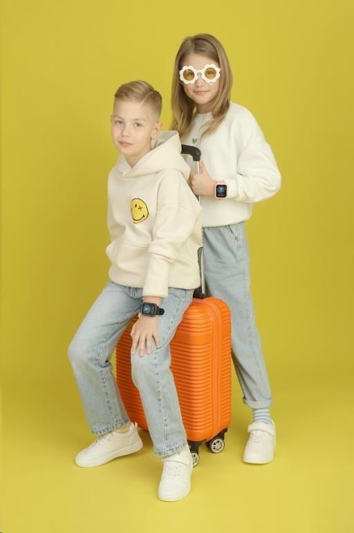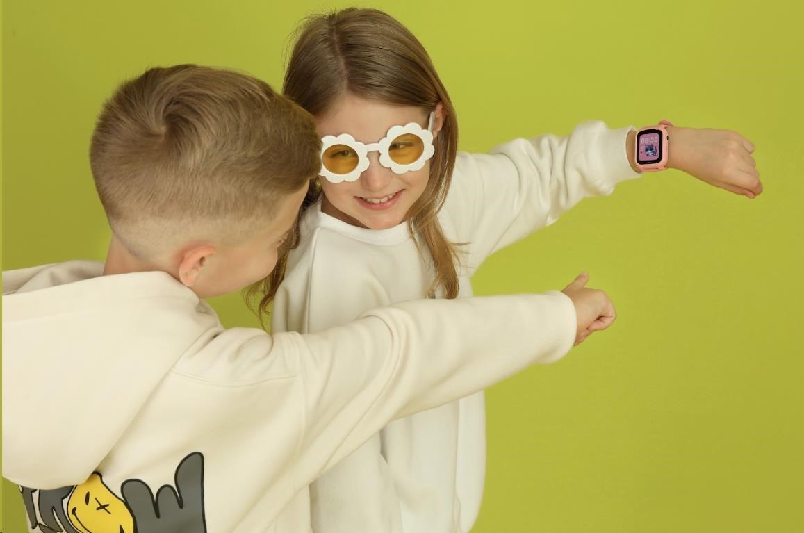 Ďalšie funkcie: vymeniteľné fluoroscenčné puzdro, šnúrka na krk s detským ochranným mechanizmom, podpora WhatsApp/TikTok, Spotify, funkcia odomknutia tvárou/PIN kód/heslo, možnosť prenosu dát USB/Bluetooth, podpora bezdrôtových slúchadiel Bluetooth, rôzne menu štýly, popruh "KIDS SIZE